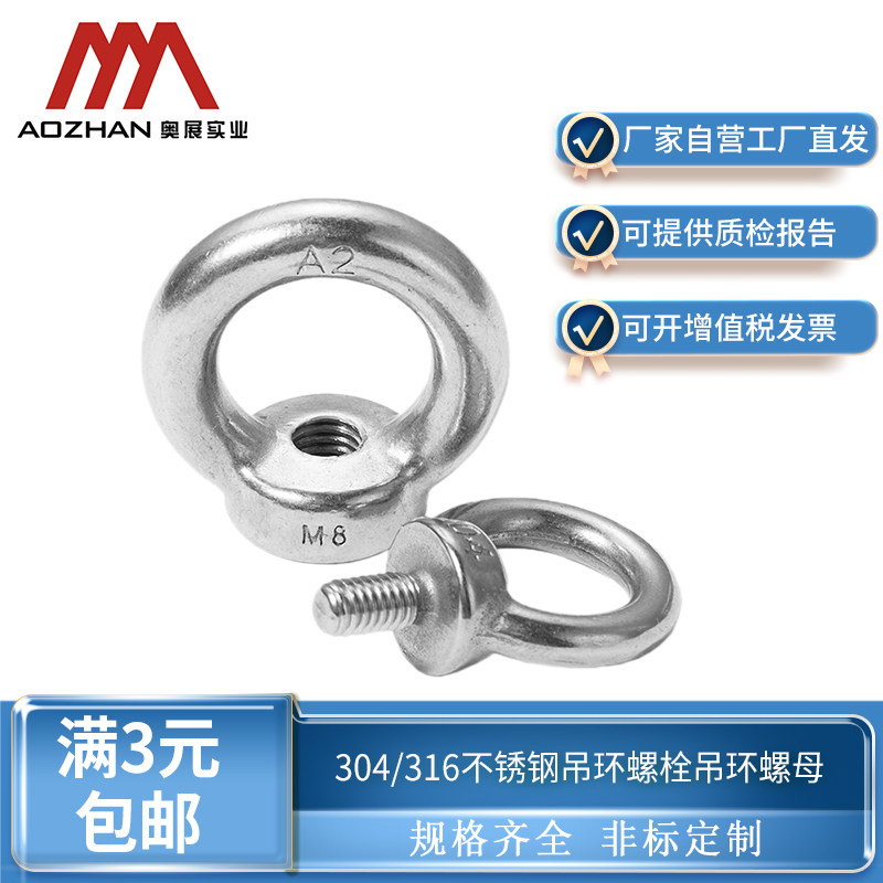 📚 奥展304不锈钢膨胀圈吊环螺栓 带环螺丝秋千挂钩吊环螺丝钉M6-M20