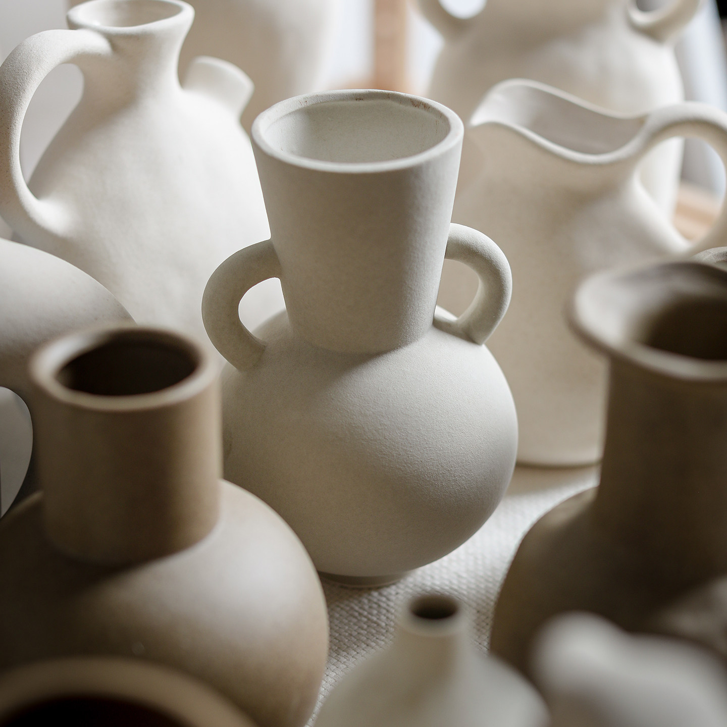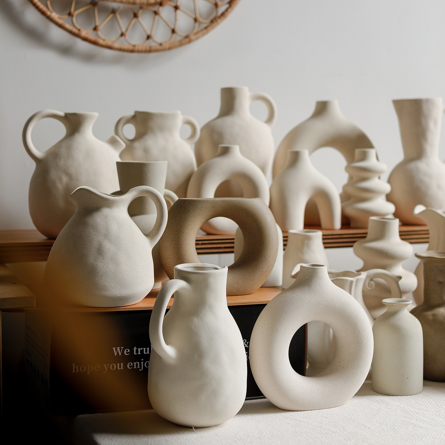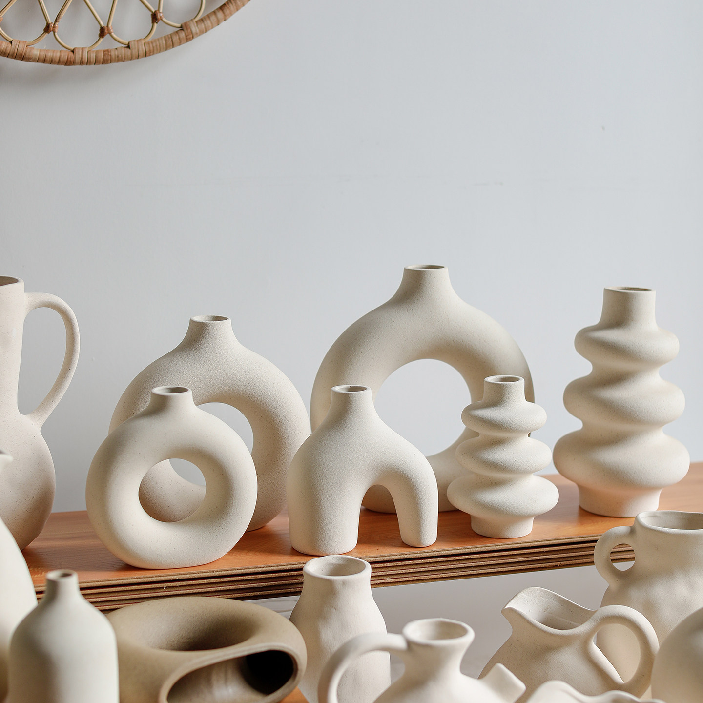 📚 侘寂风白色陶瓷素胚素烧花瓶组合摆件水培玄关装饰摆件展示架粗陶