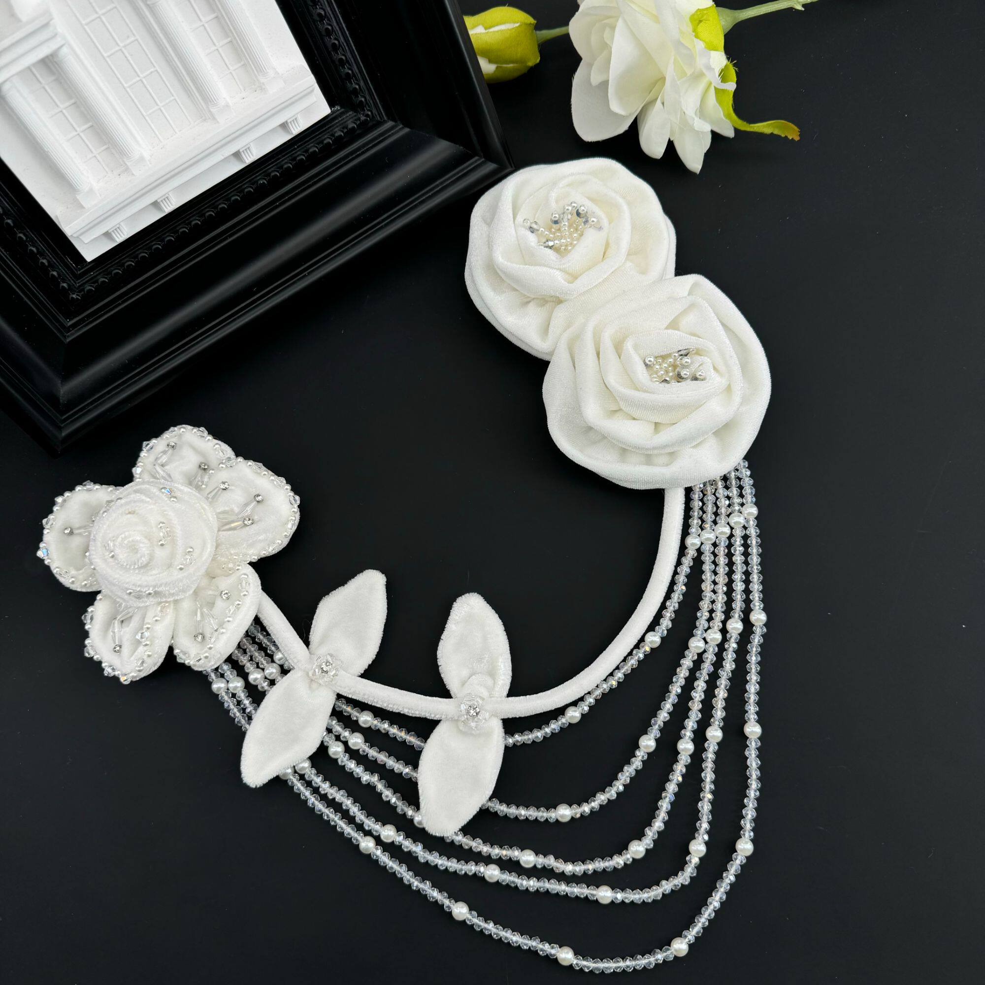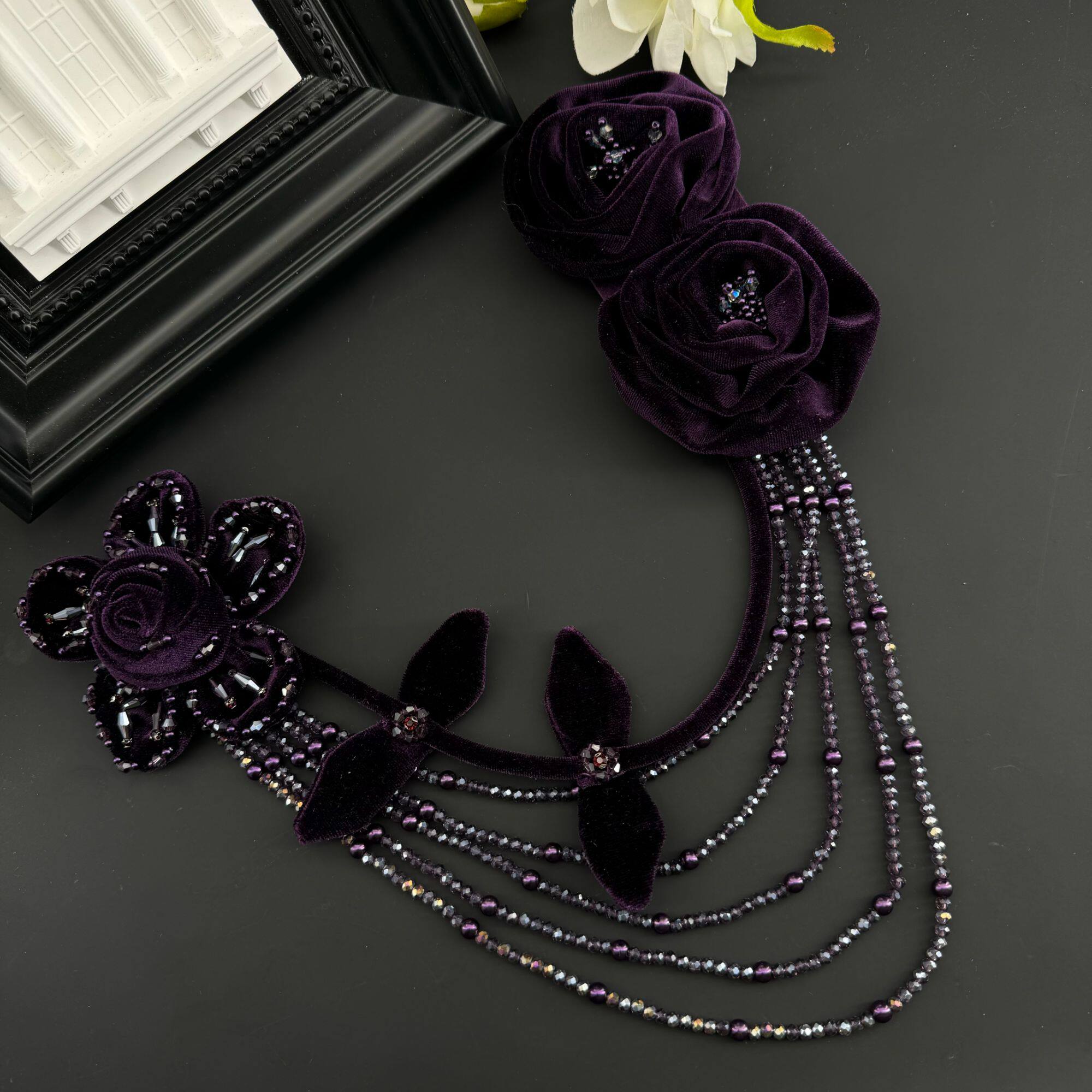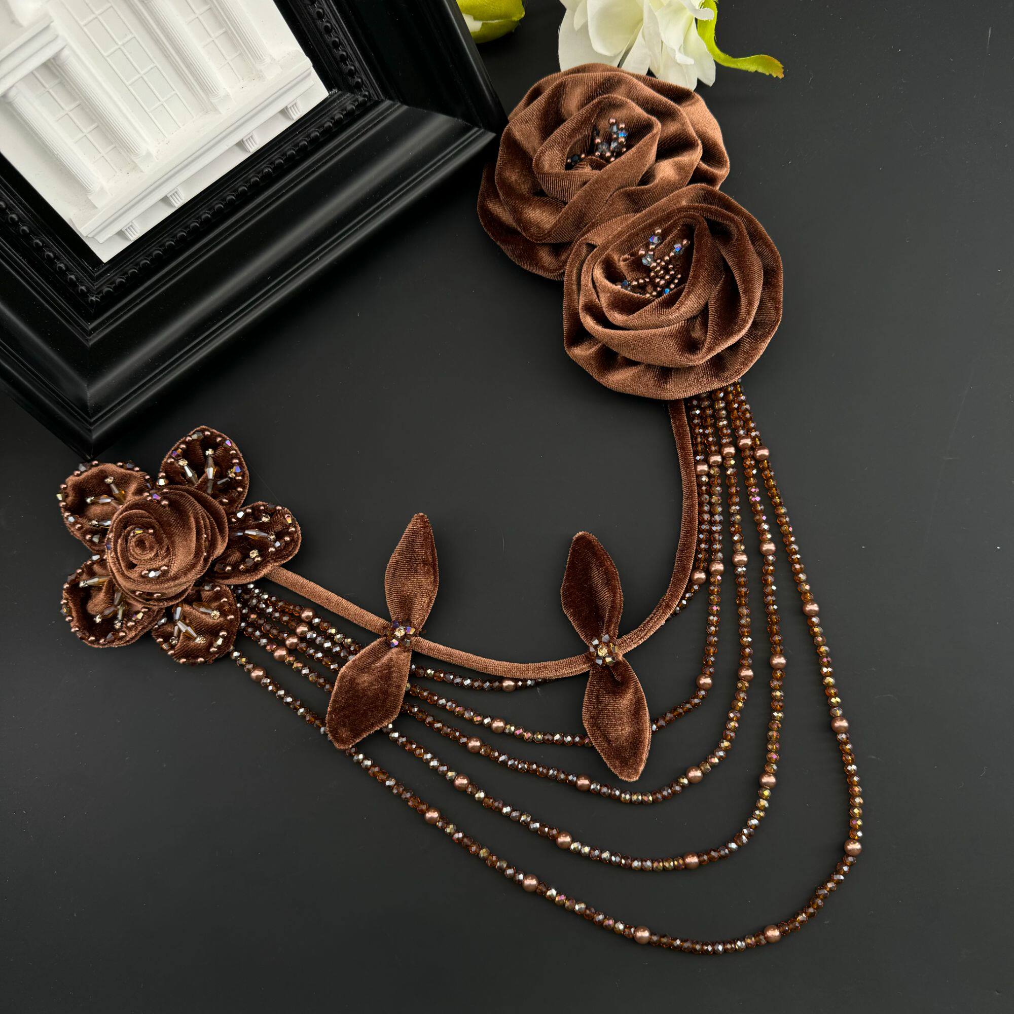 📚 三生之恋丝绒玫瑰花水晶多层流苏带别针AZ412