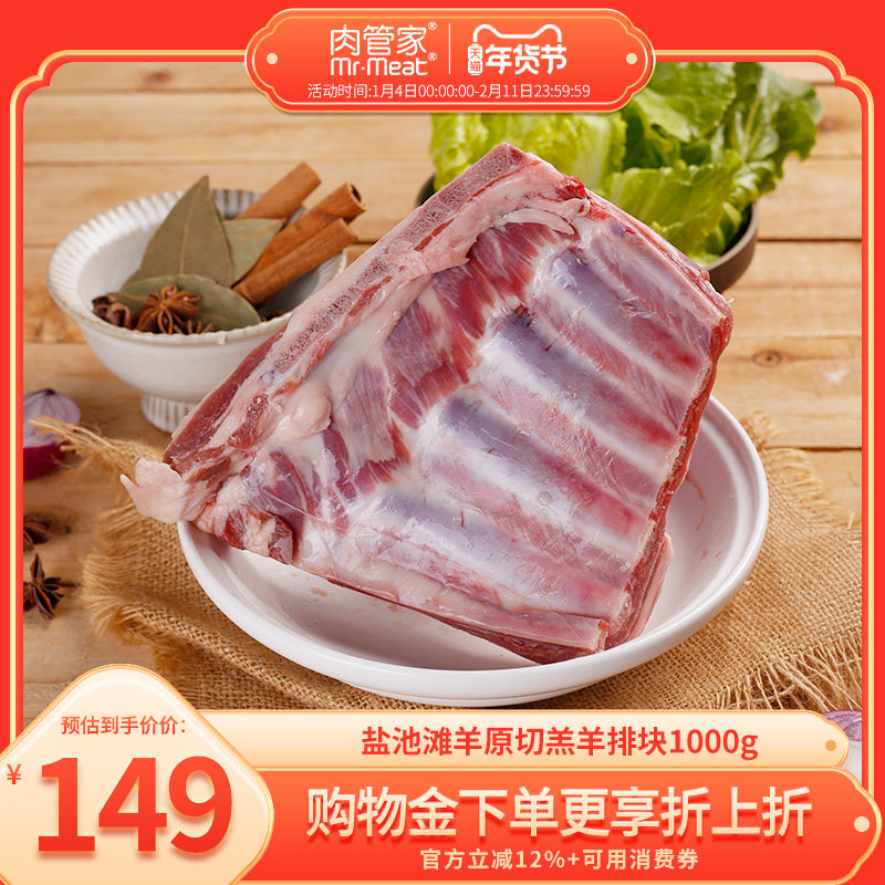 📚 肉管家盐池滩羊原切羔羊排块1000g2斤新鲜羔羊肋排羊排骨整块清真
