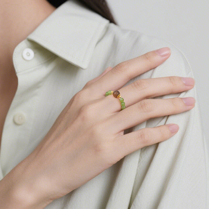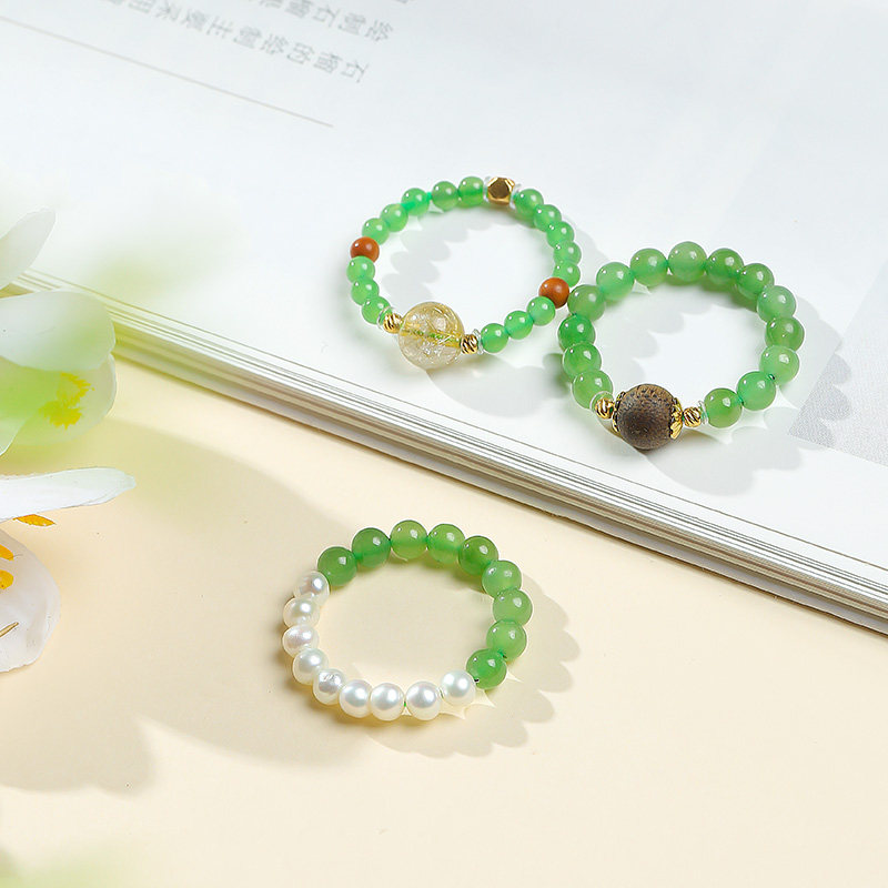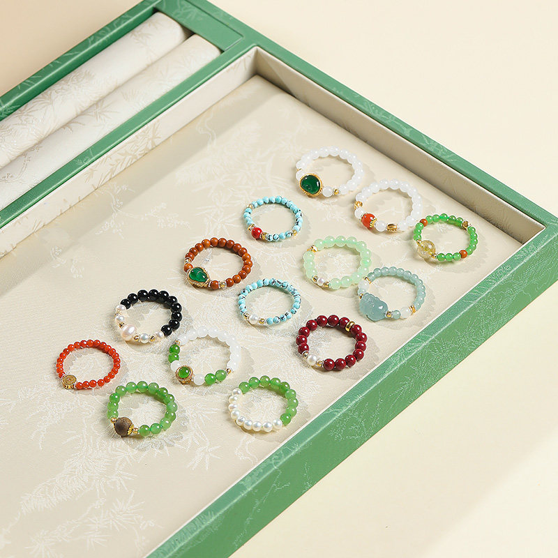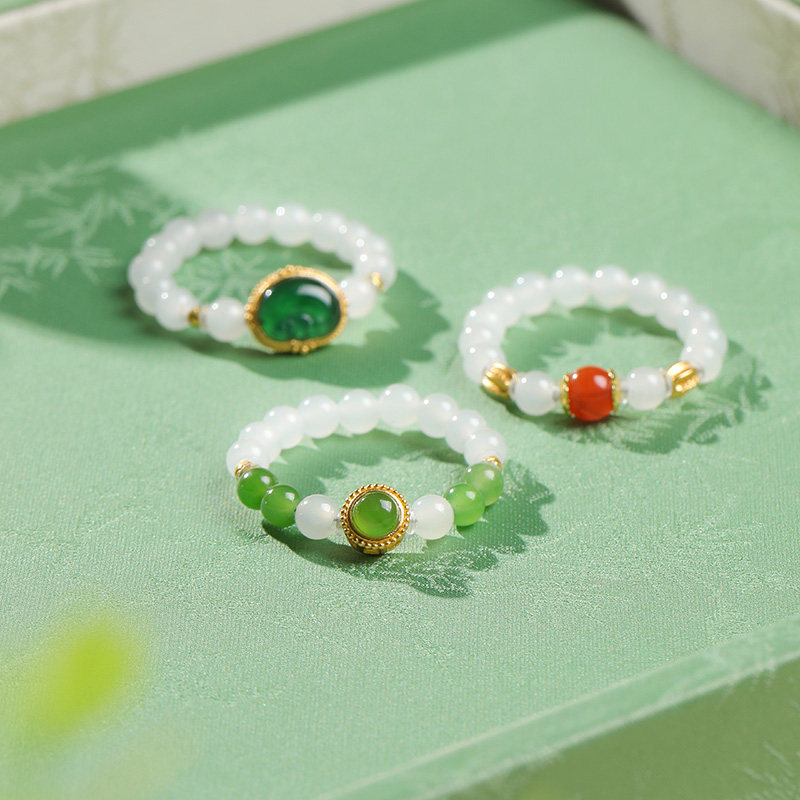 📚 印象眸和田玉戒指碧玉白玉小米珠串珠戒指指环女款多宝时尚手饰