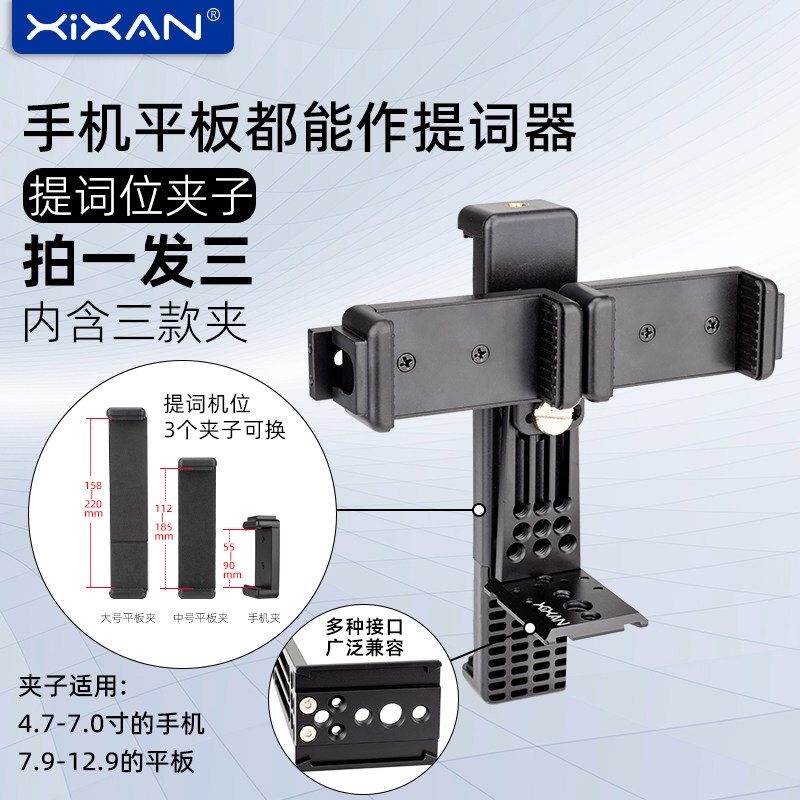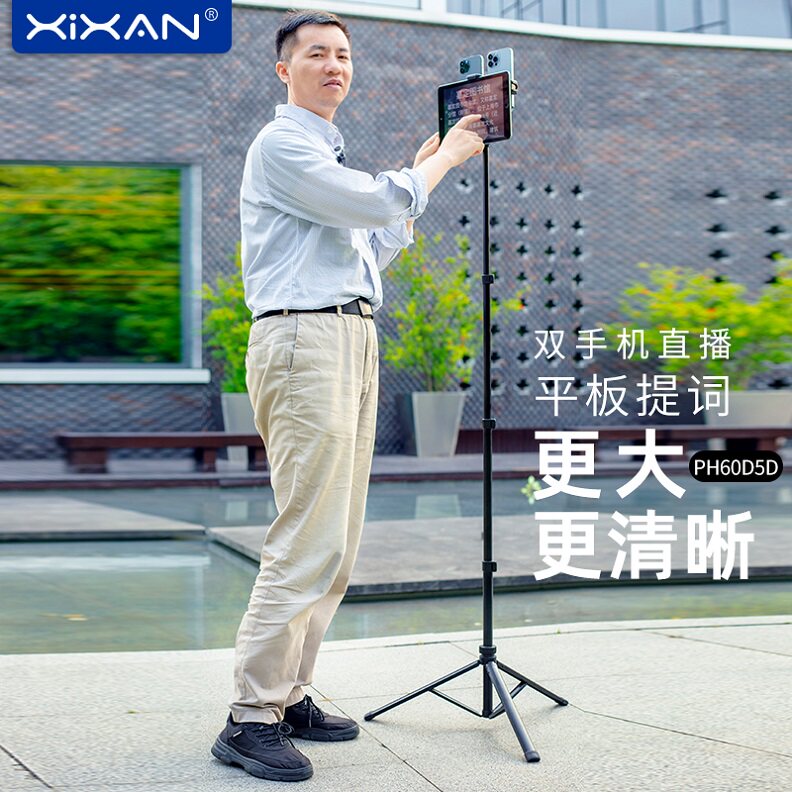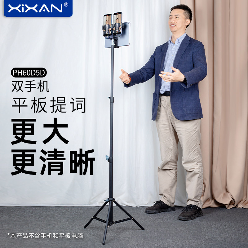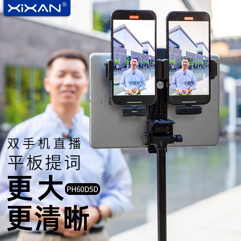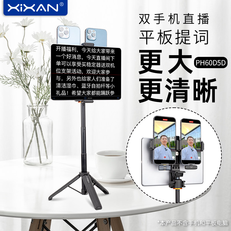 📚 芯鲜PH60D5D双机位直播提词支架大屏幕平板电脑题词夹子双手机桌面主播落地提词器支撑架题词器拍摄三脚架