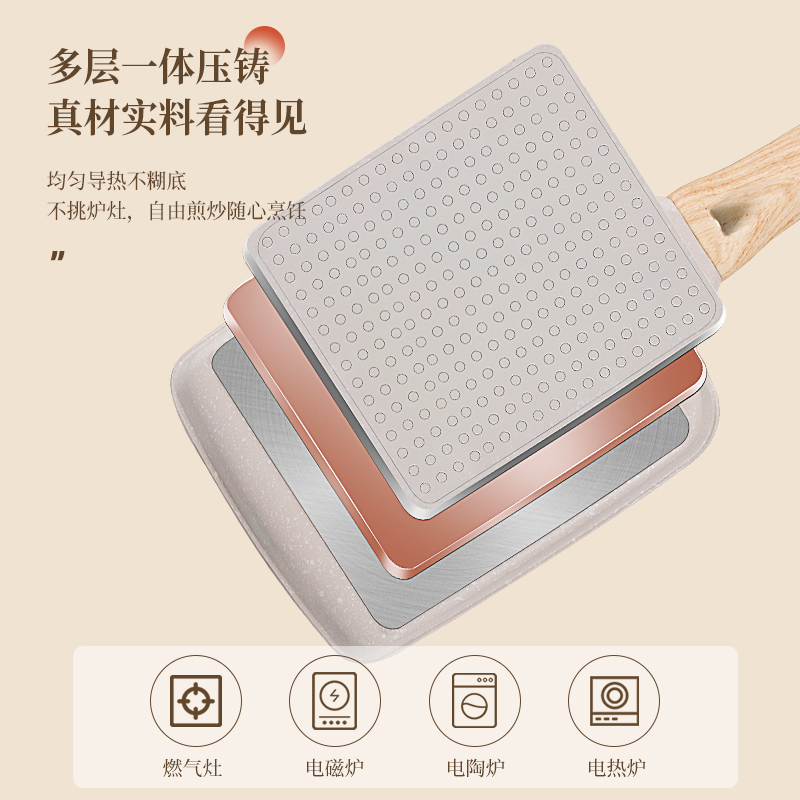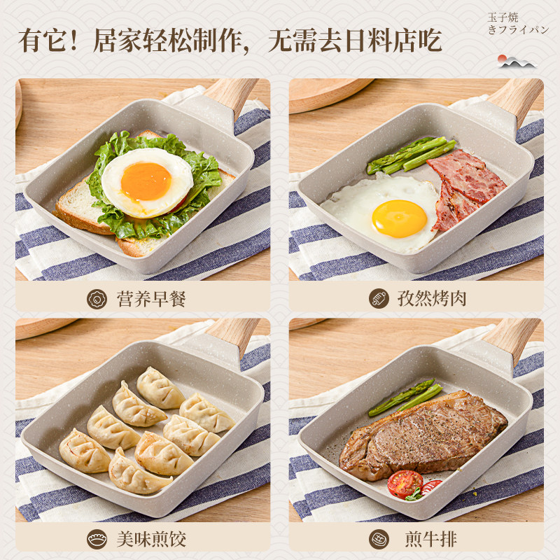 📚 玉子烧煎锅日式家用平底不粘锅方形厚蛋烧锅麦饭石早餐煎蛋神器