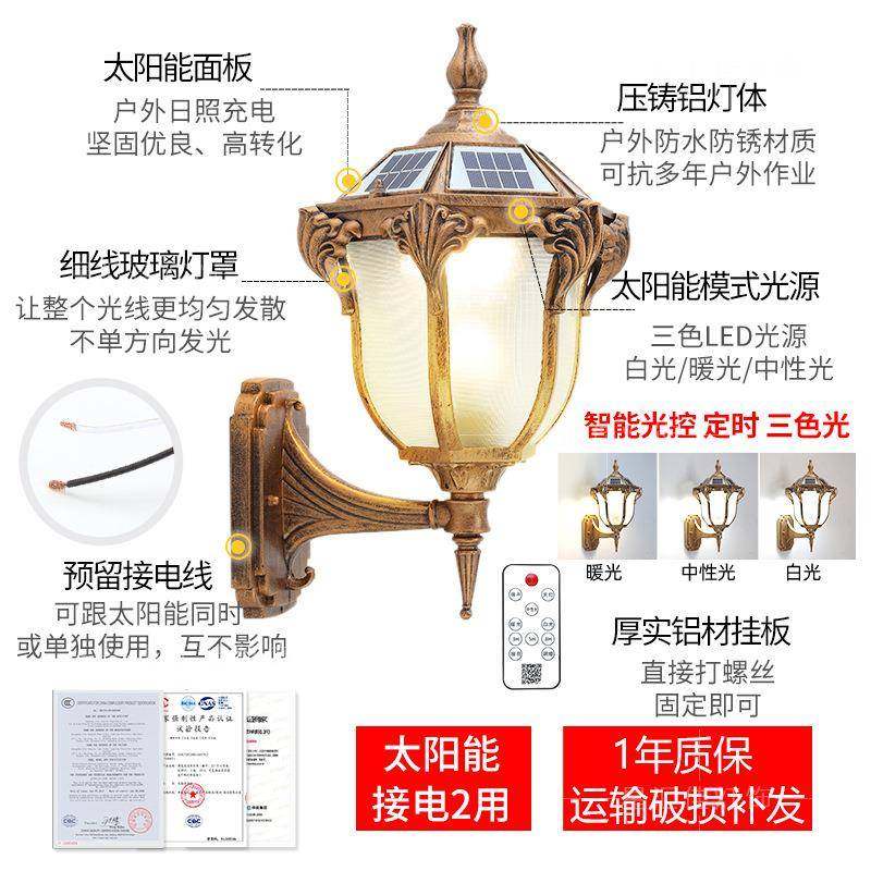 📚 壁灯太阳能墅户外防水别大门阳走台柱XHJ-BD10子廊室外欧式墙复古