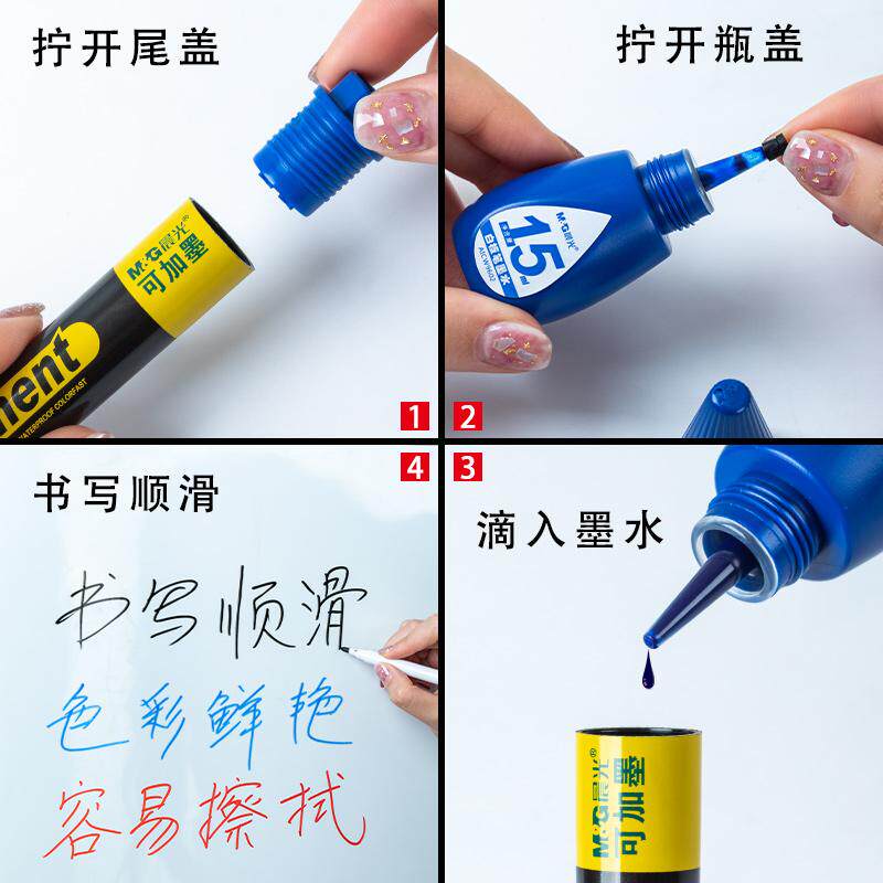 📚 晨光白板笔墨水补充液可擦易擦速干水性大头笔可加墨黑色红蓝填充液白板笔专用水吸墨器可擦记号笔油墨水墨汁