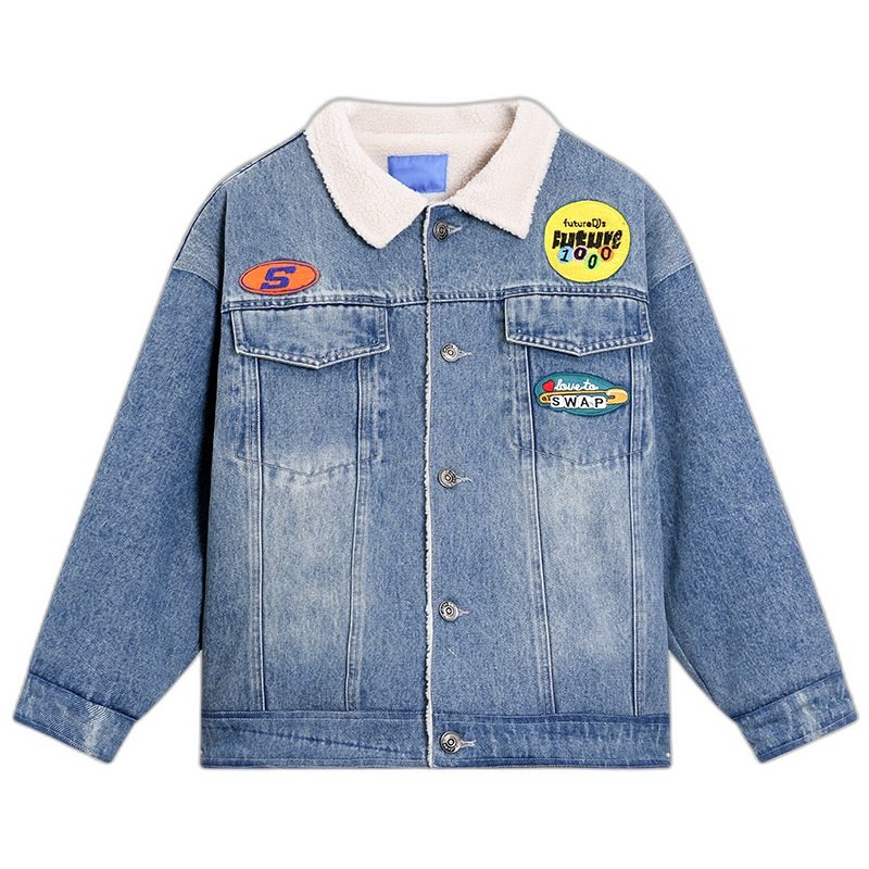 📚 2025冬装波拉童装男女童中大童韩范翻领加绒牛仔衣机车夹克衫外套