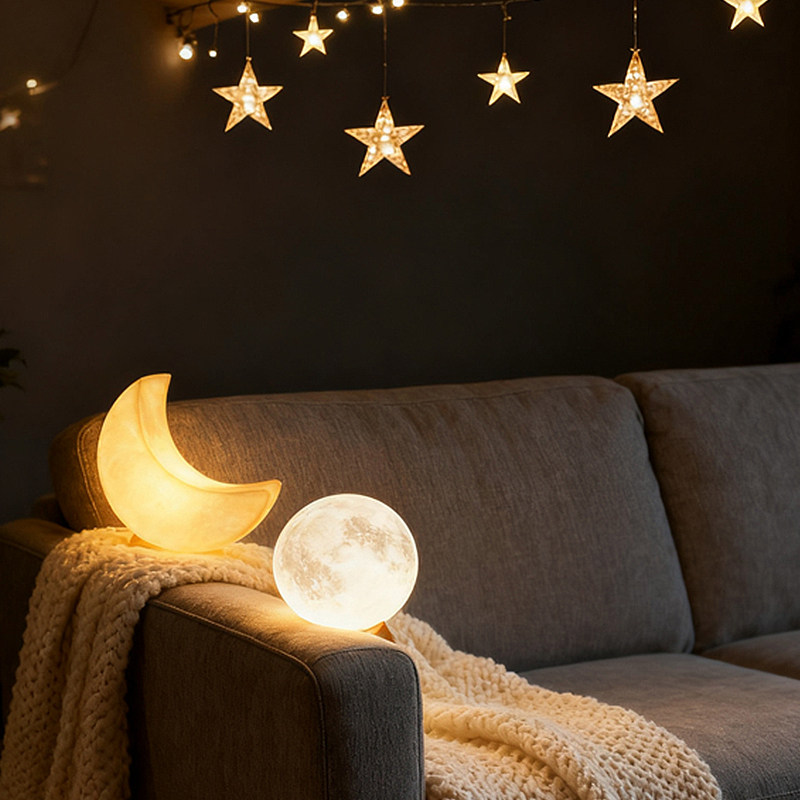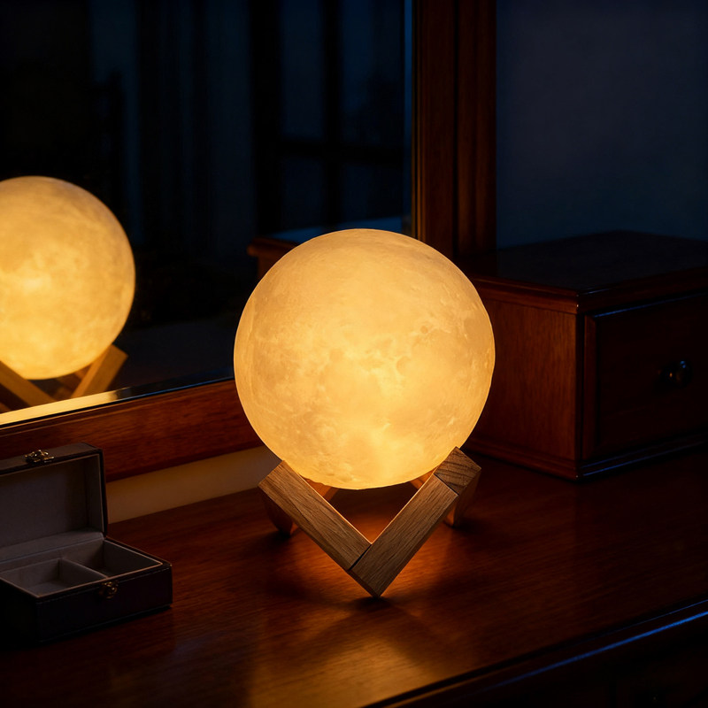 📚 3d立体浮雕月球灯 半圆月亮摆件道具DIY手绘中秋发光月亮灯小夜灯