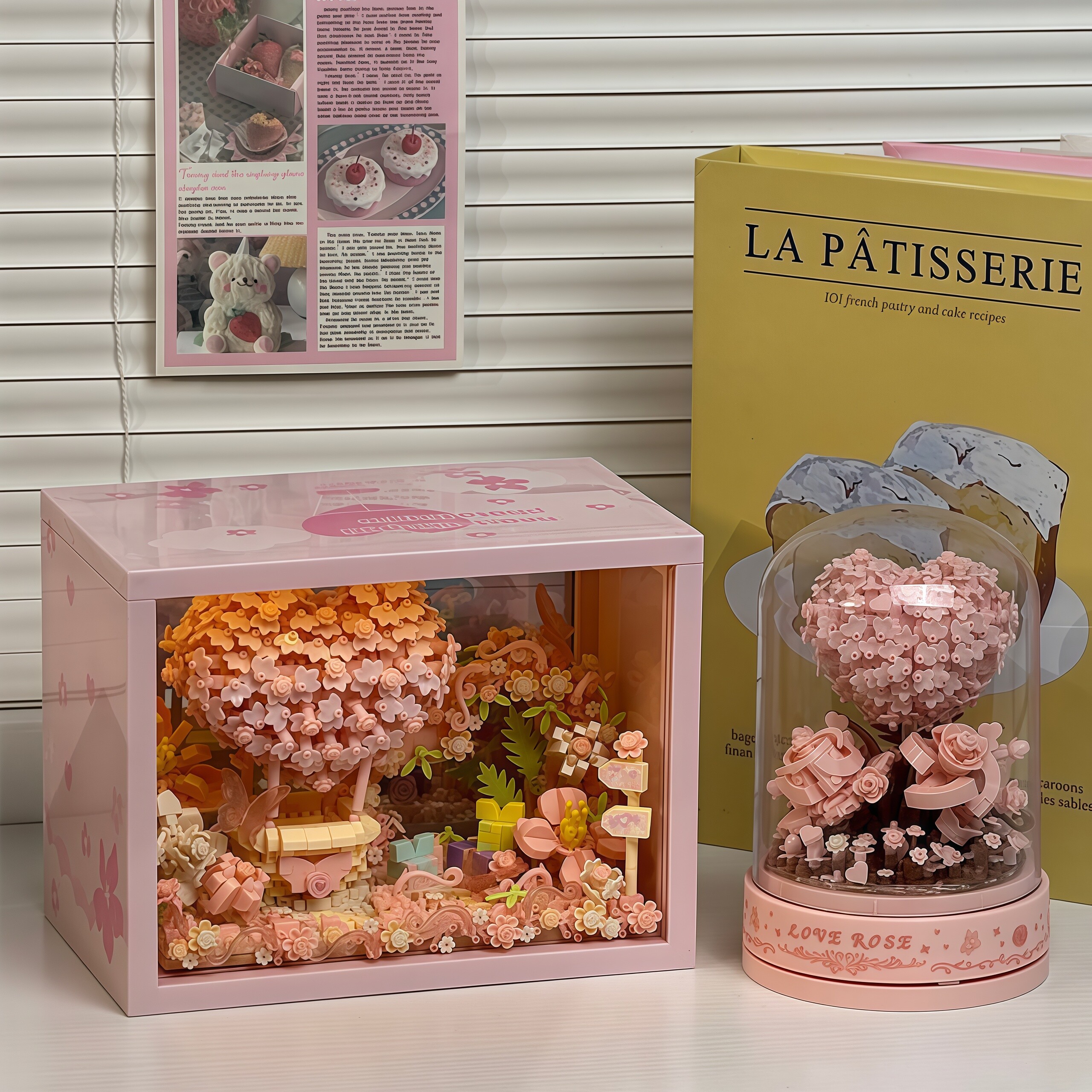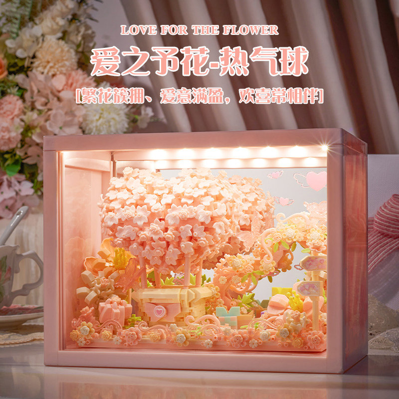 📚 爱心相框积木拼装3d立体发光摆件永生花手工diy情人节礼物送女友