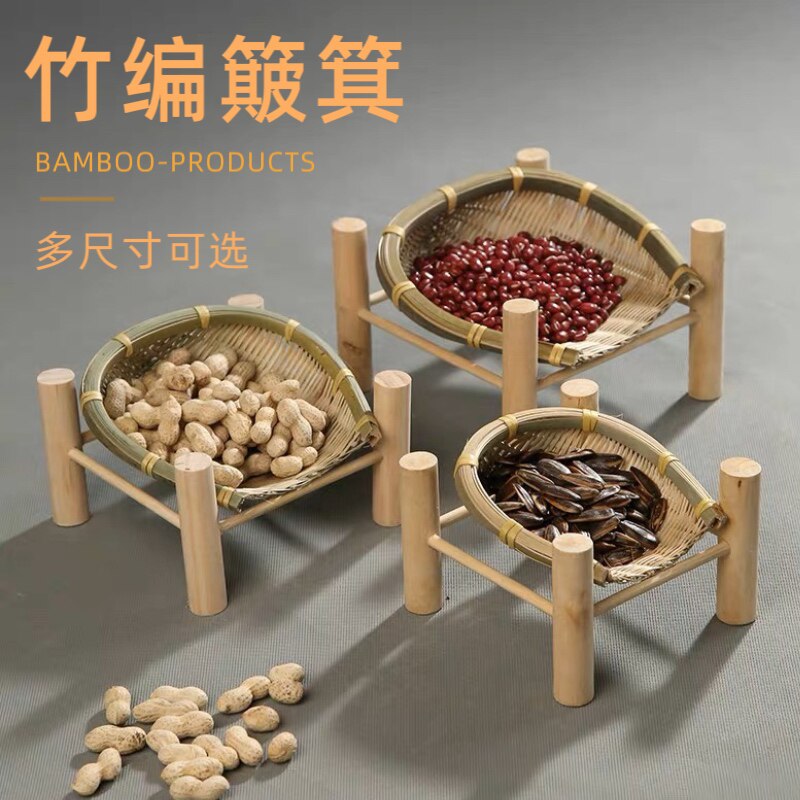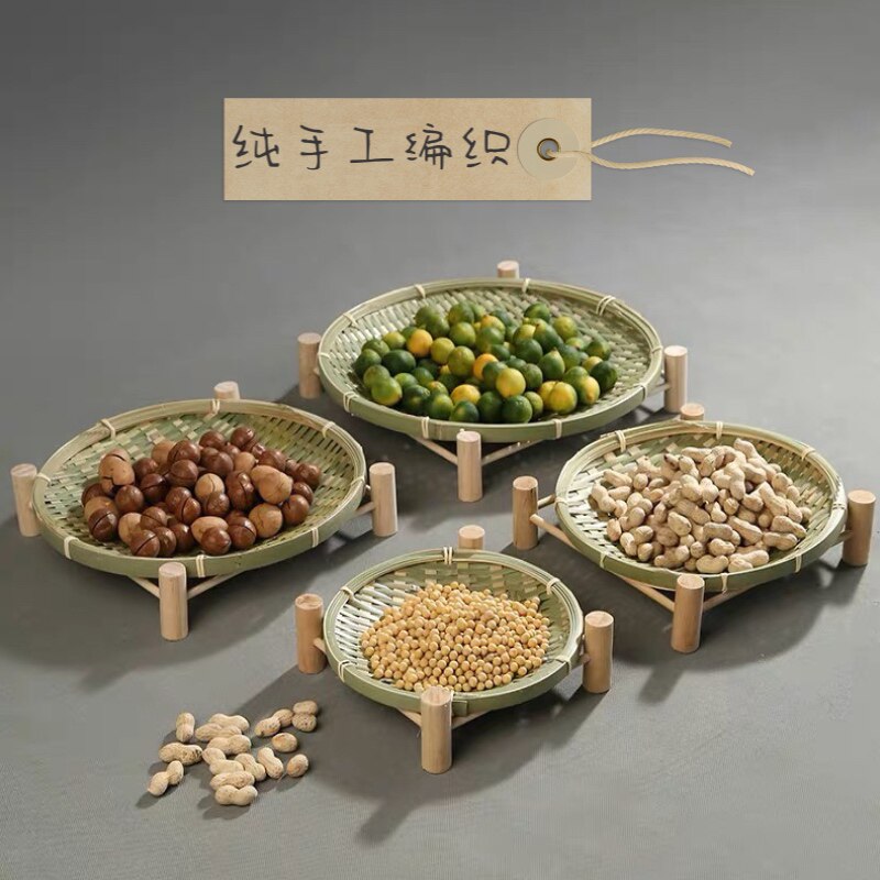 📚 手工竹编干果盘水果篮竹篓茶点盘创意家用竹筐收纳筐篮子圆形簸箕