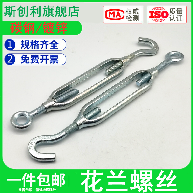 📚 镀锌花篮螺丝钢丝绳收紧器拉紧器开体花蓝M5M8-M36紧绳器花兰螺栓