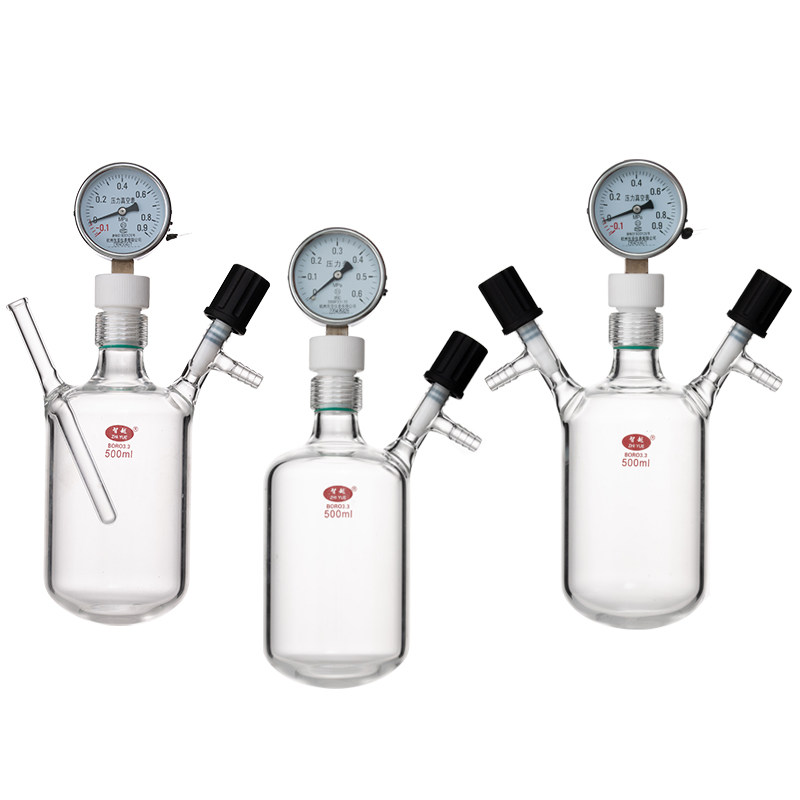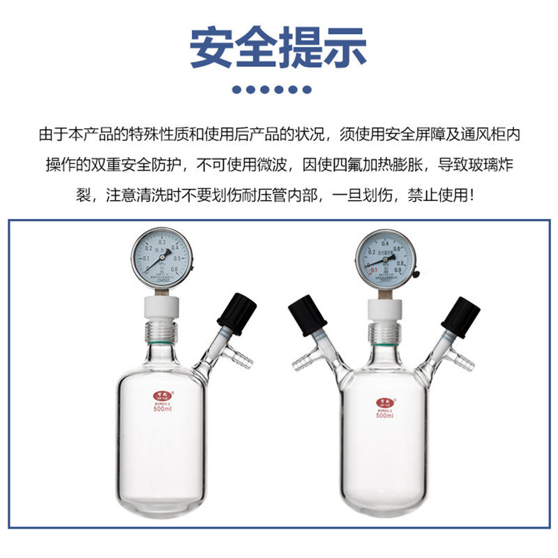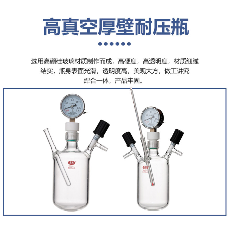 📚 高真空厚壁耐压瓶具压力表加厚玻璃耐压烧瓶抽气加压瓶玻璃烧瓶
