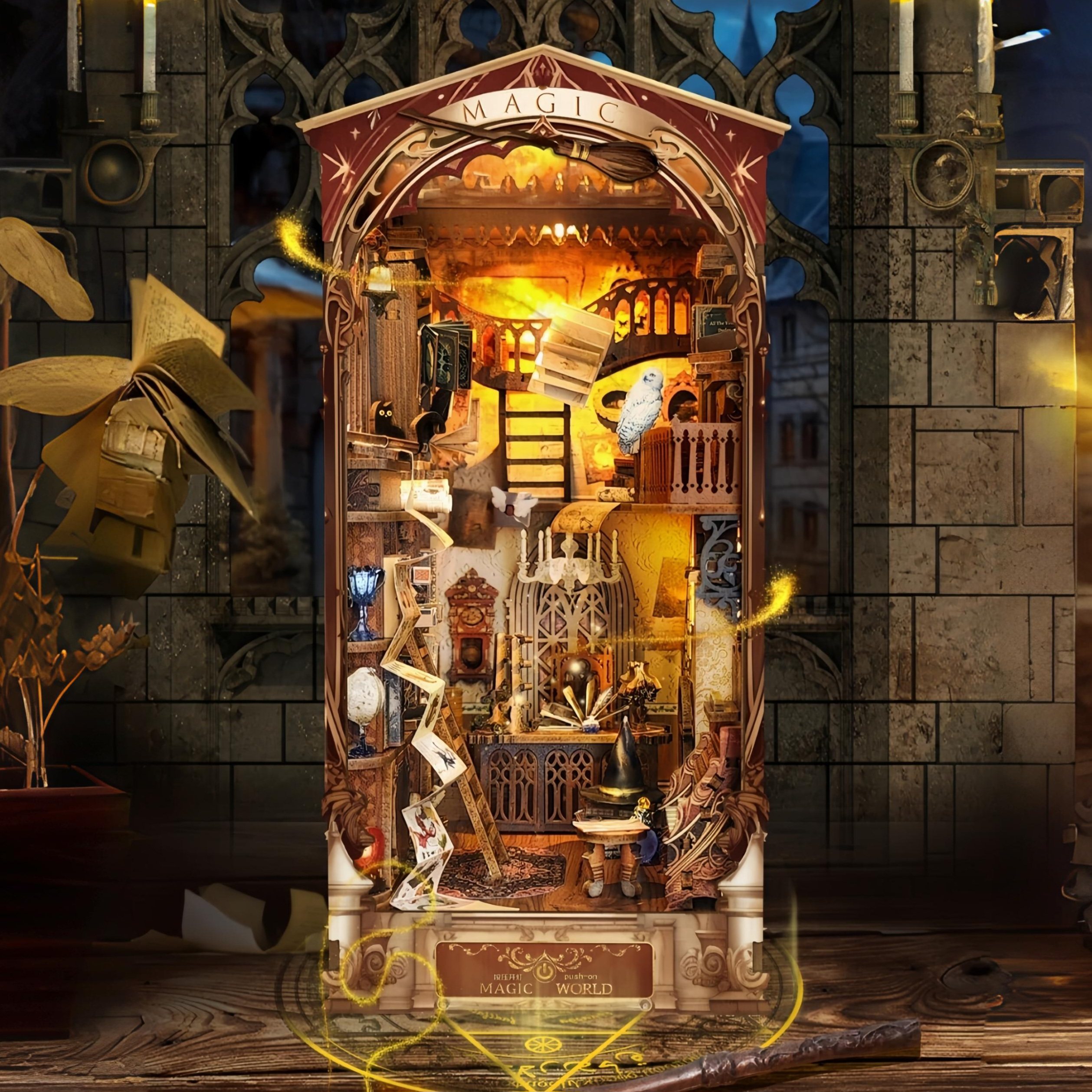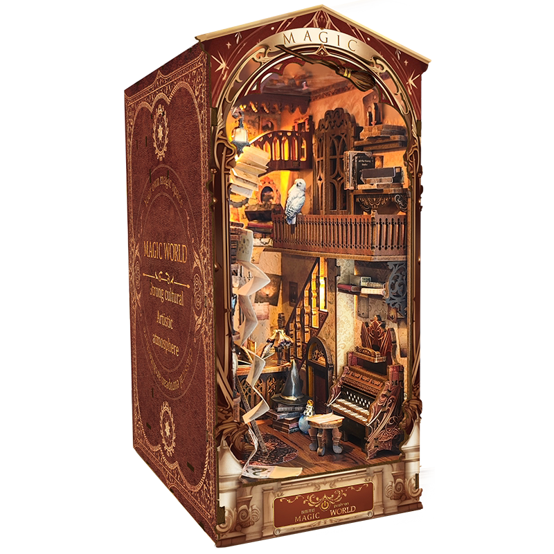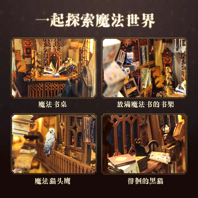 📚 西西弗鲸空哈利波特魔法世界木质书立霍格沃茨灯光小屋积木拼图