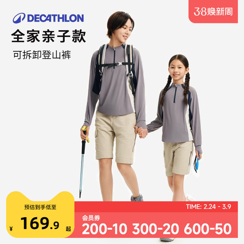 📚 迪卡侬速干裤男童户外徒步登山两截裤儿童短裤工装裤子亲子装KIDC