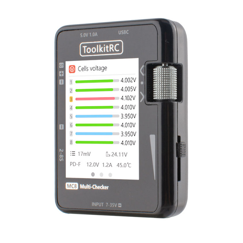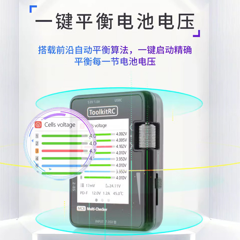 📚 ToolkitRC MC8多功能电显 测电器 一键平衡电压 信号测试 PD充电