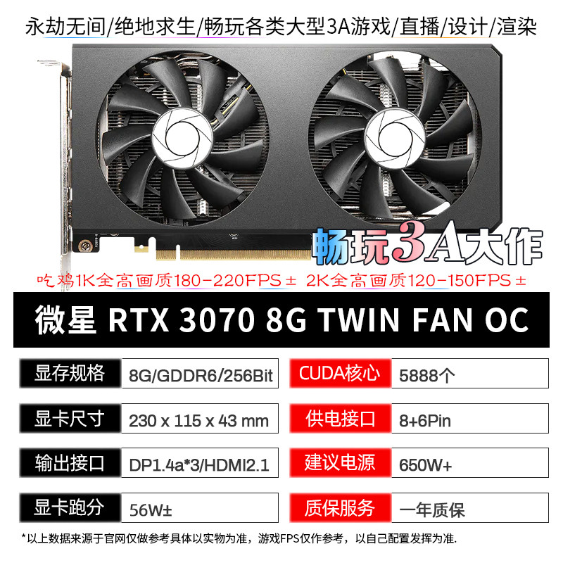 57¥ tG-#22>lD 9ahD5iEdRjo¥ https://m.tb.cn/h.iHauXDP 二手RTX3070 3060TI 2070 8G 3060 12G 2060 6G台式网吧拆机显卡 --------------------- 【原售价】935元 【现售价】935元。