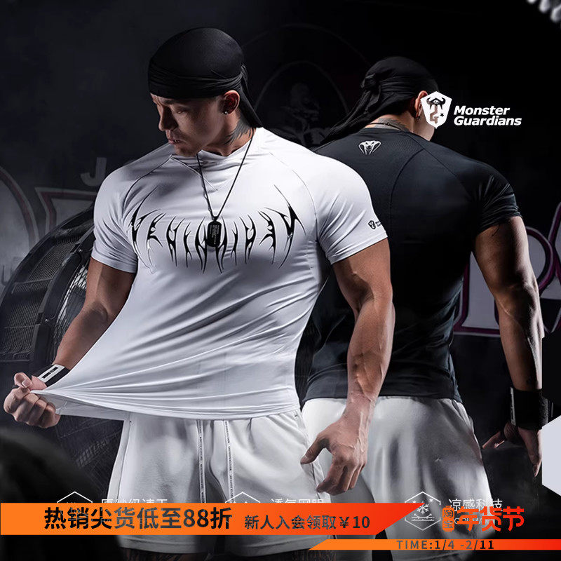 📚 Monster Guardians男子原纱速干衣凉感透气修身训练短袖健身衣夏