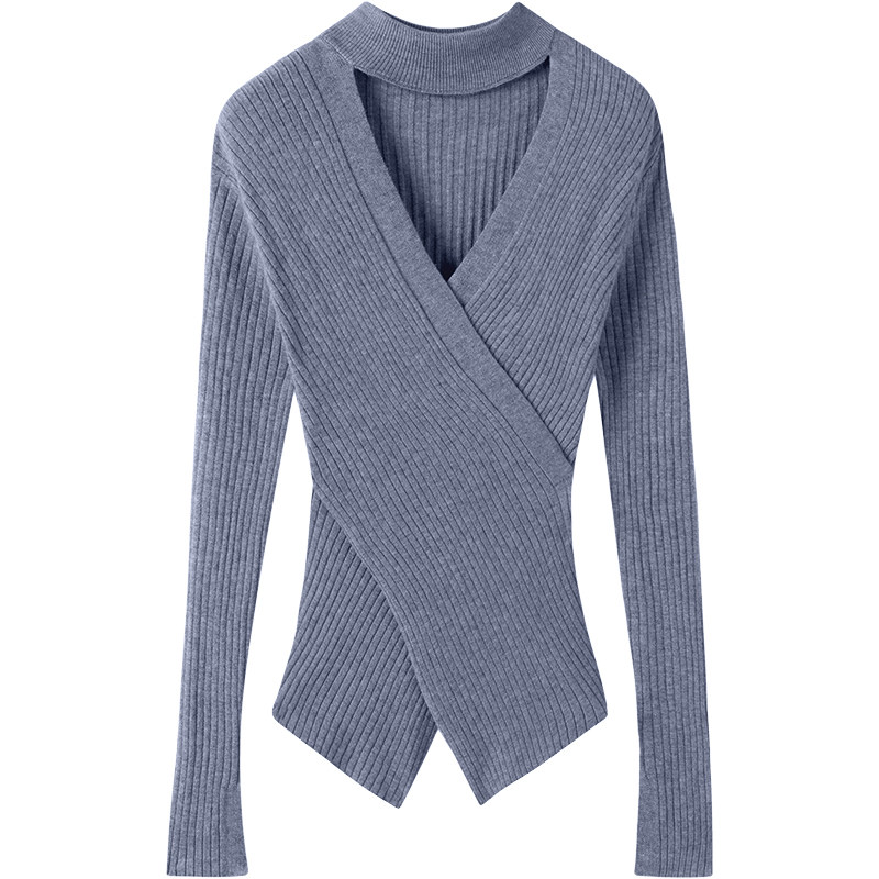 📚 上身气质绝了~不规则交叉V领挂脖羊绒针织衫女修身纯羊绒打底衫