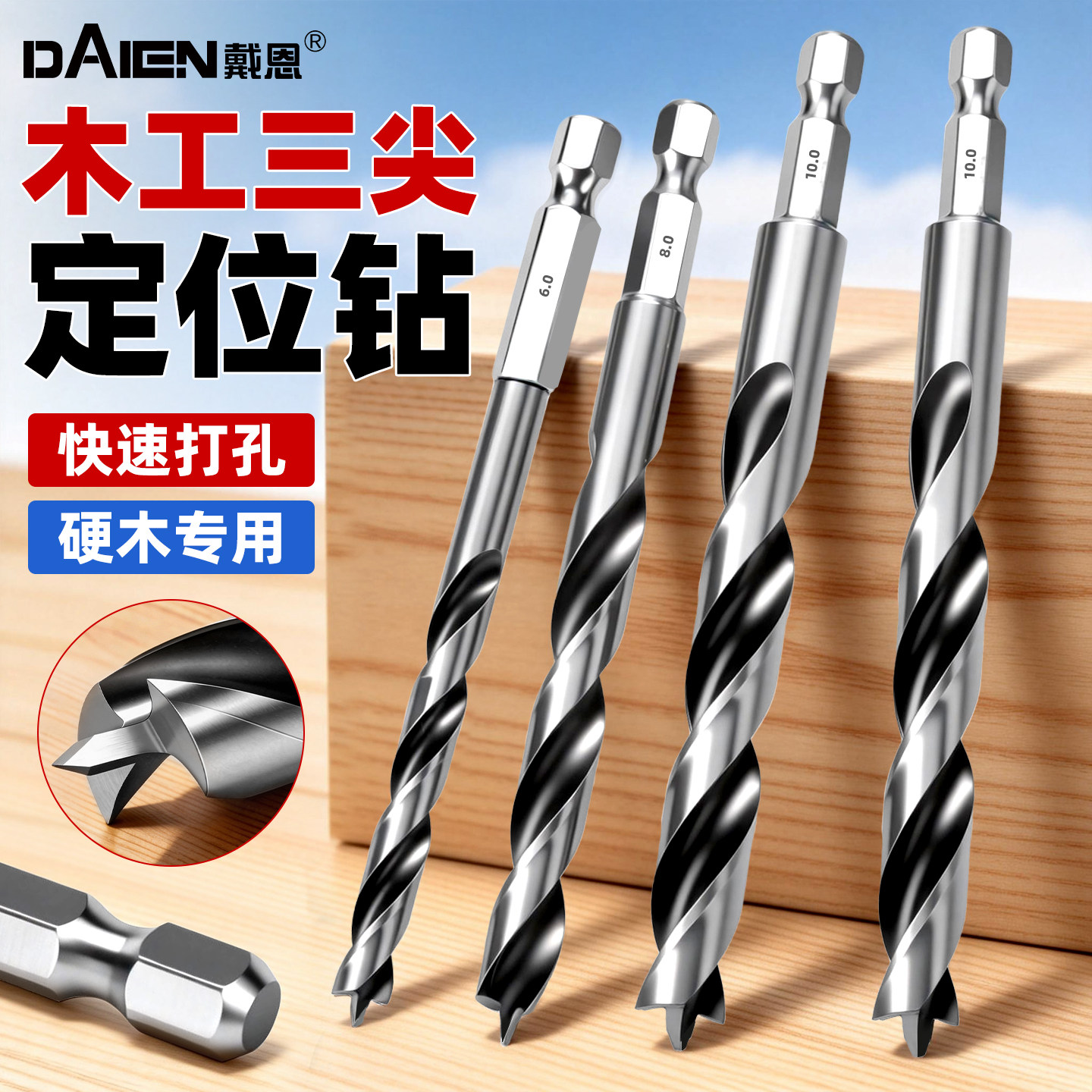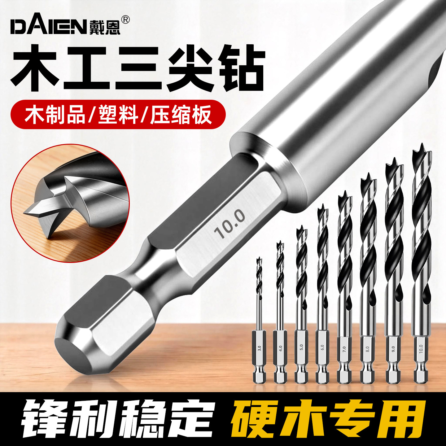 📚 木工钻头六角柄麻花钻专用木头木板打孔三尖钻开孔器手电钻高强度