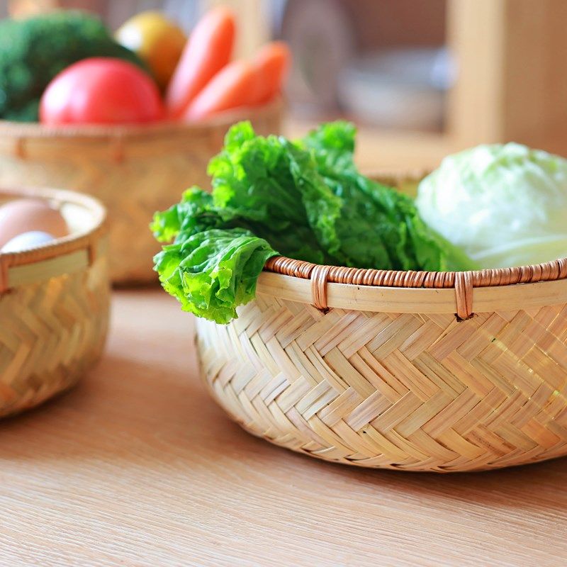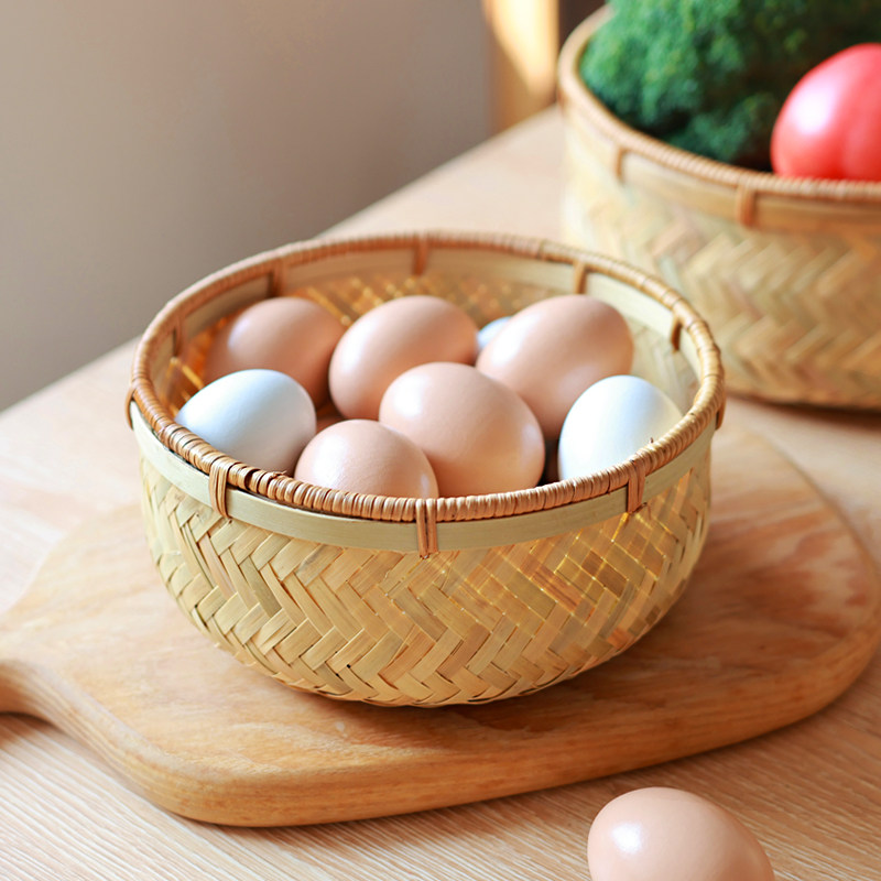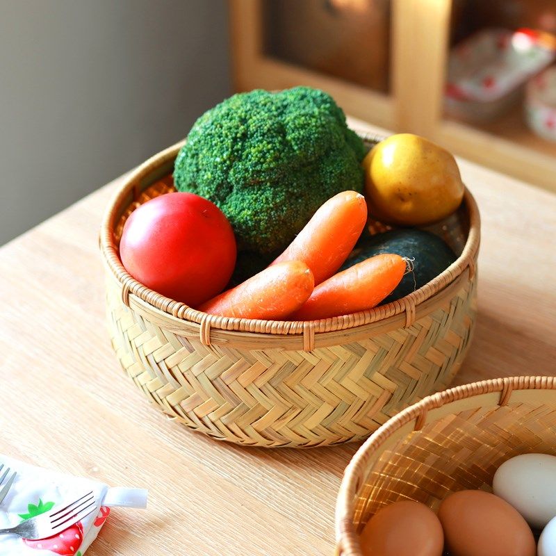 📚 手工竹编蔬菜食品篮田园风面包篮厨房鸡蛋筐竹藤口编织篮果盘
