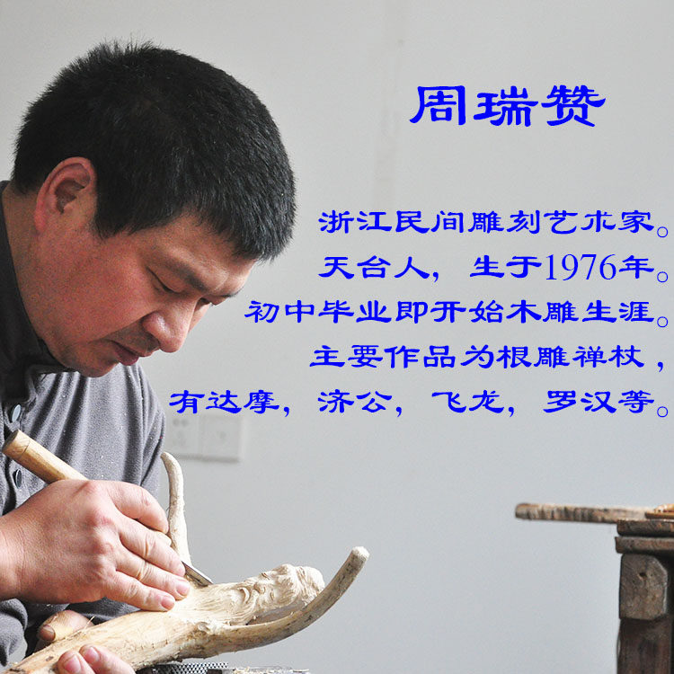 📚 周瑞赞黄檀木雕【根艺拐杖 古风禅杖】中式家居摆件 手工收藏手杖