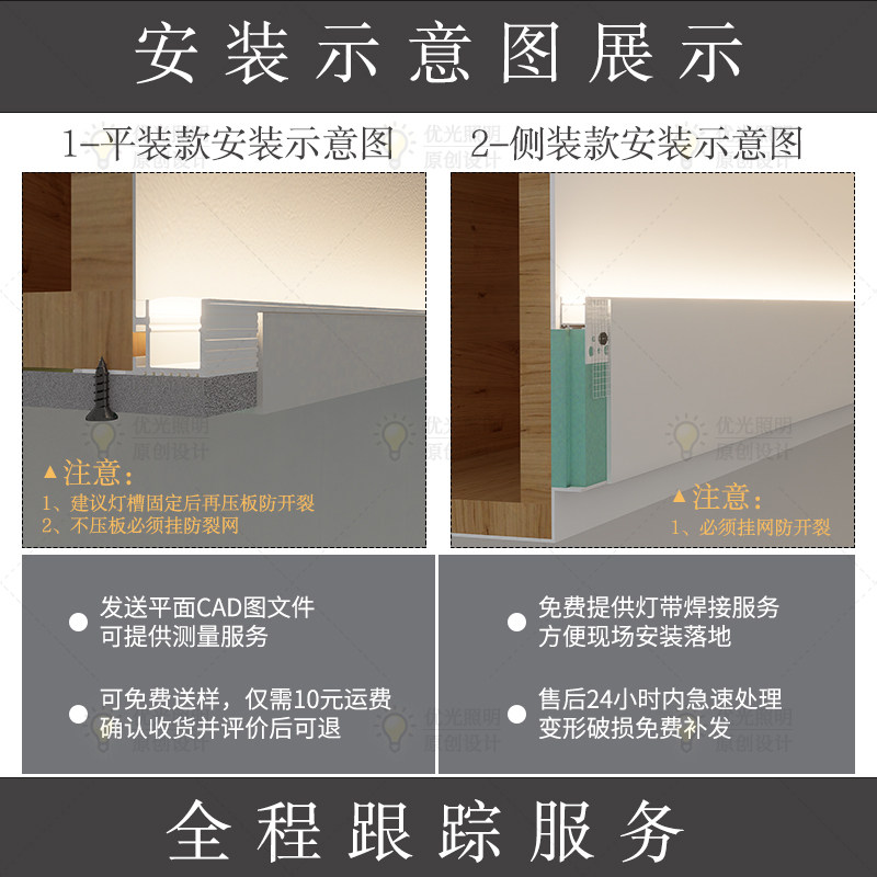 📚 悬浮吊顶双眼皮灯槽线型无主灯反光灯槽带隐形单边向上发光斜发光