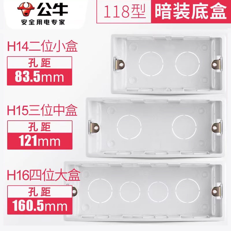 📚 公牛118型开关插座墙暗装底盒线盒暗盒家用开关盒接线盒电线盒子