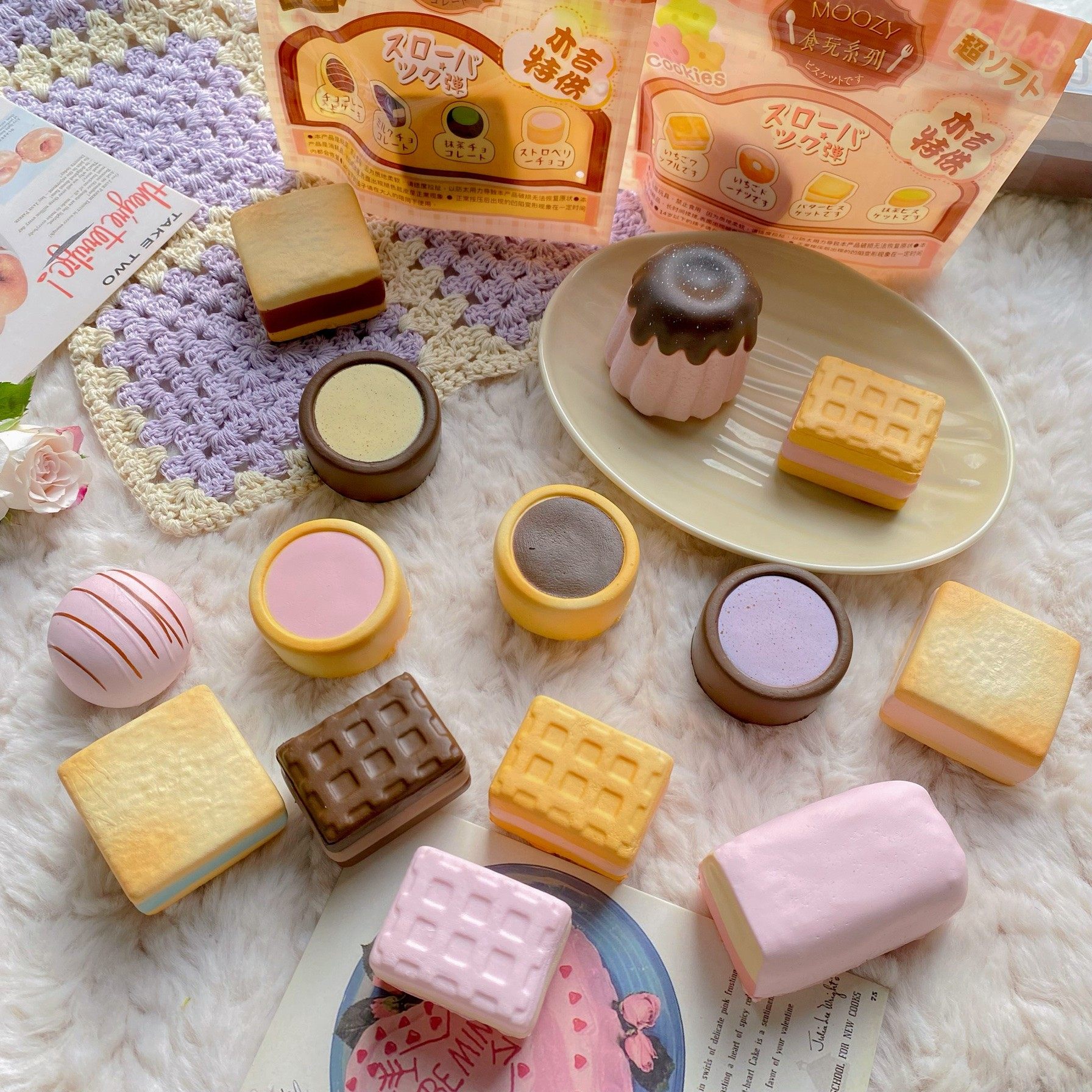 📚 木吉食玩一代慢回弹仿真玩具巧克力捏捏乐squishy可露丽威化饼干