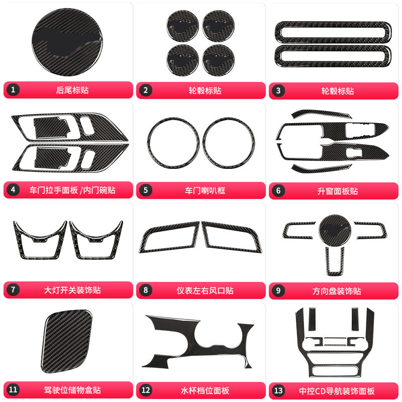 📚 适用于福特野马Mustang碳纤维后车标尾标装饰贴汽车内饰改装配件