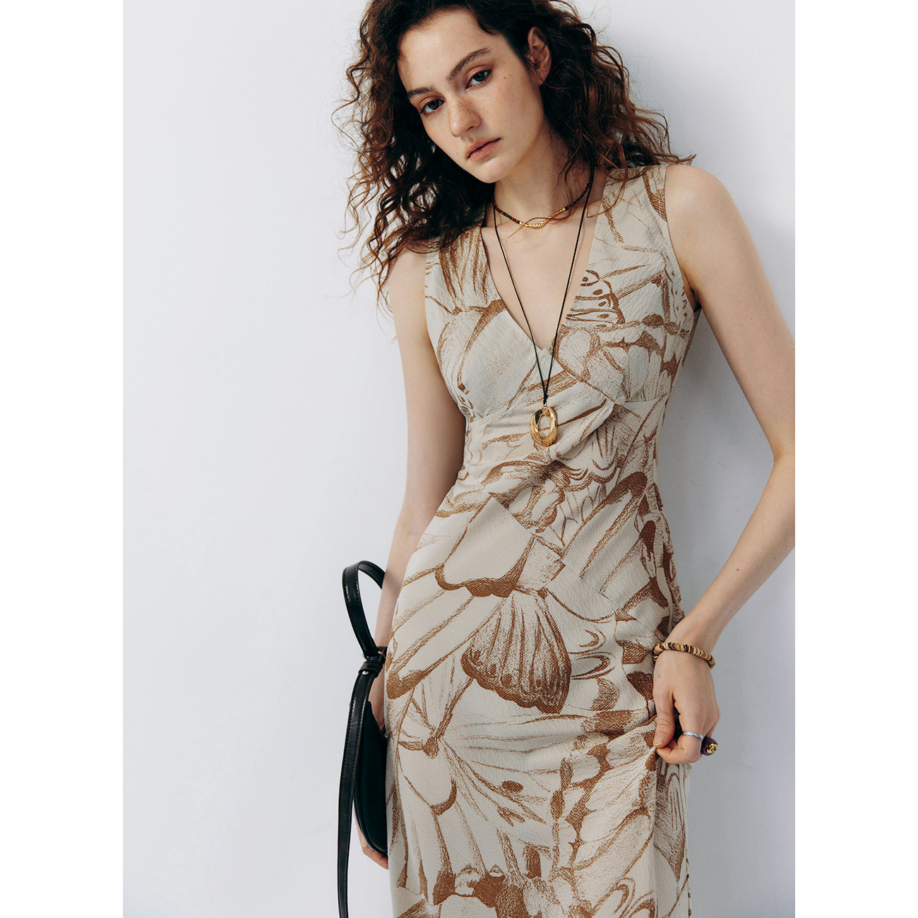 📚 【法式情书】100真丝泡泡绉双面印立体剪裁蝴蝶印花深V收腰连衣裙