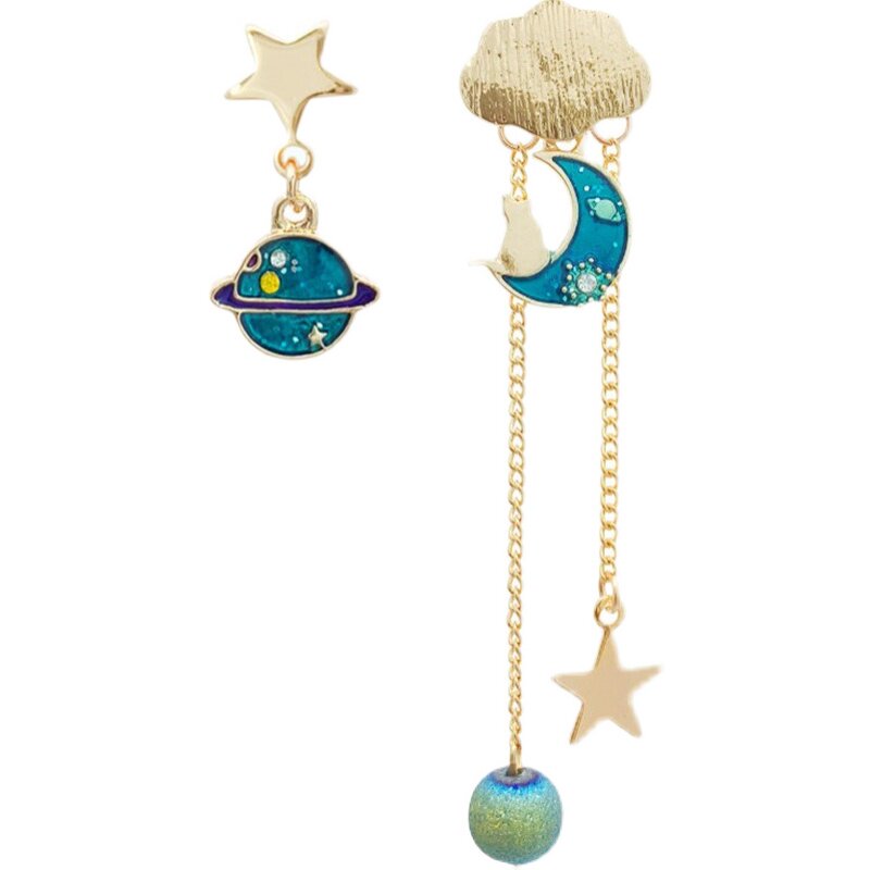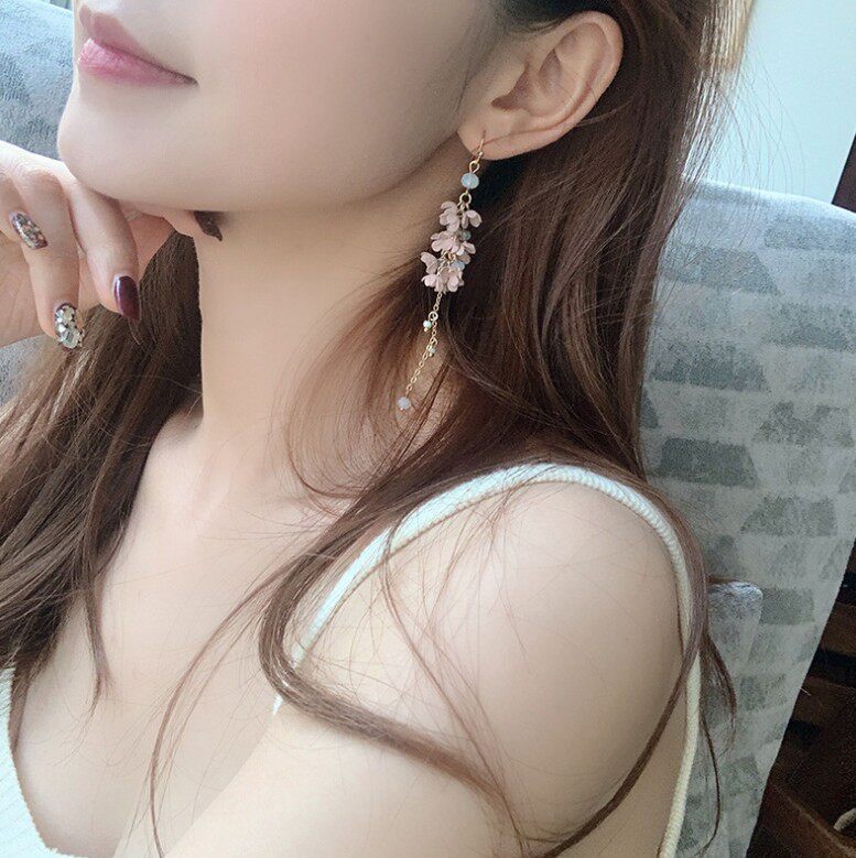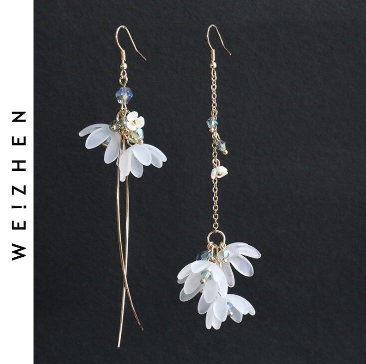 📚 S925银针日韩国甜美蝴蝶结耳钉不对称流苏长款耳环气质无耳洞耳夹