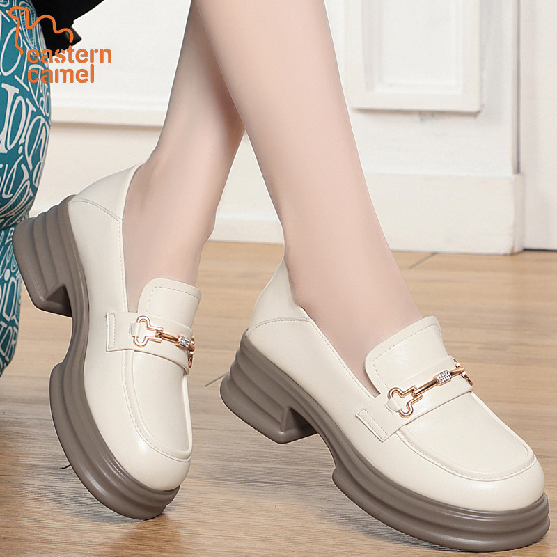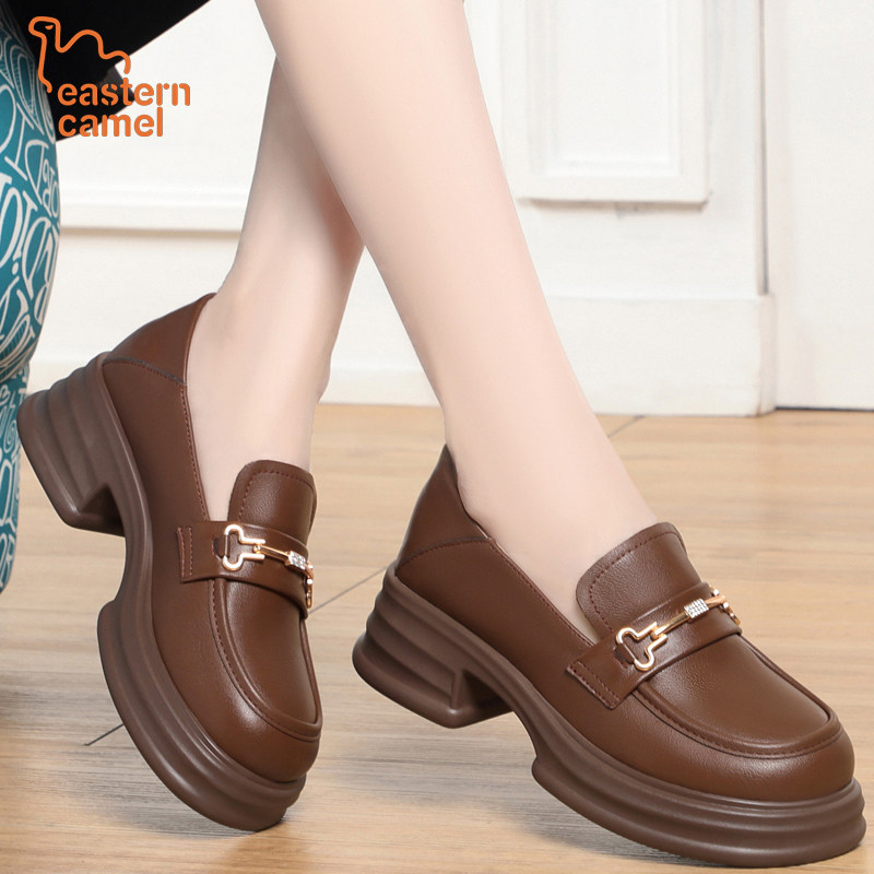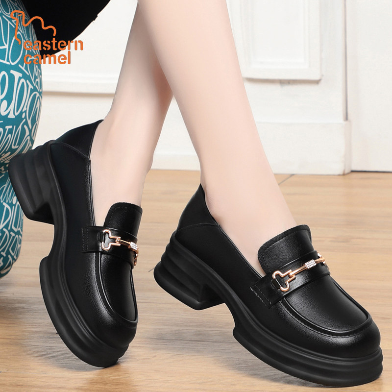 📚 东方骆驼EASTERNCAMEL乐福鞋舒适粗跟厚底妈妈鞋圆头舒适单鞋皮鞋