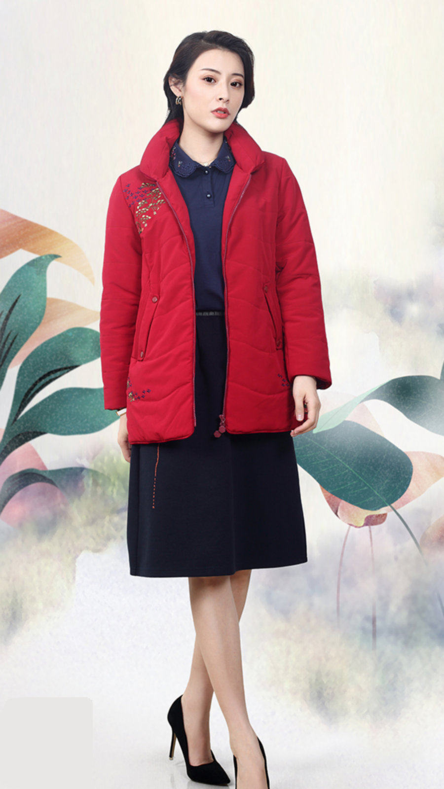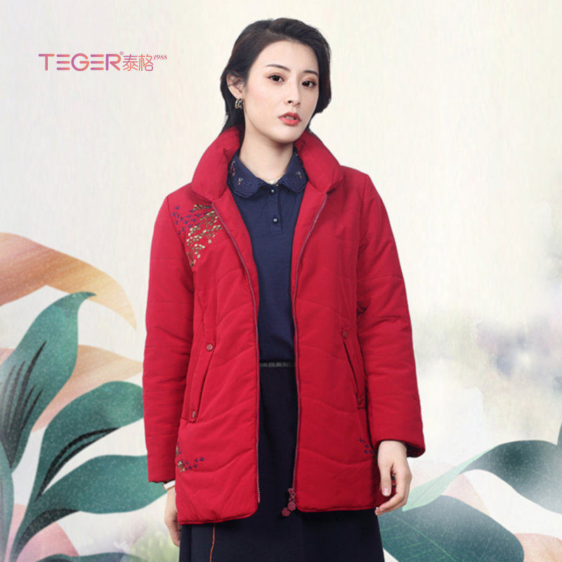 📚 泰格服饰旗下品牌朗婷儿冬装新款一手长款加大码红色女装棉衣棉服