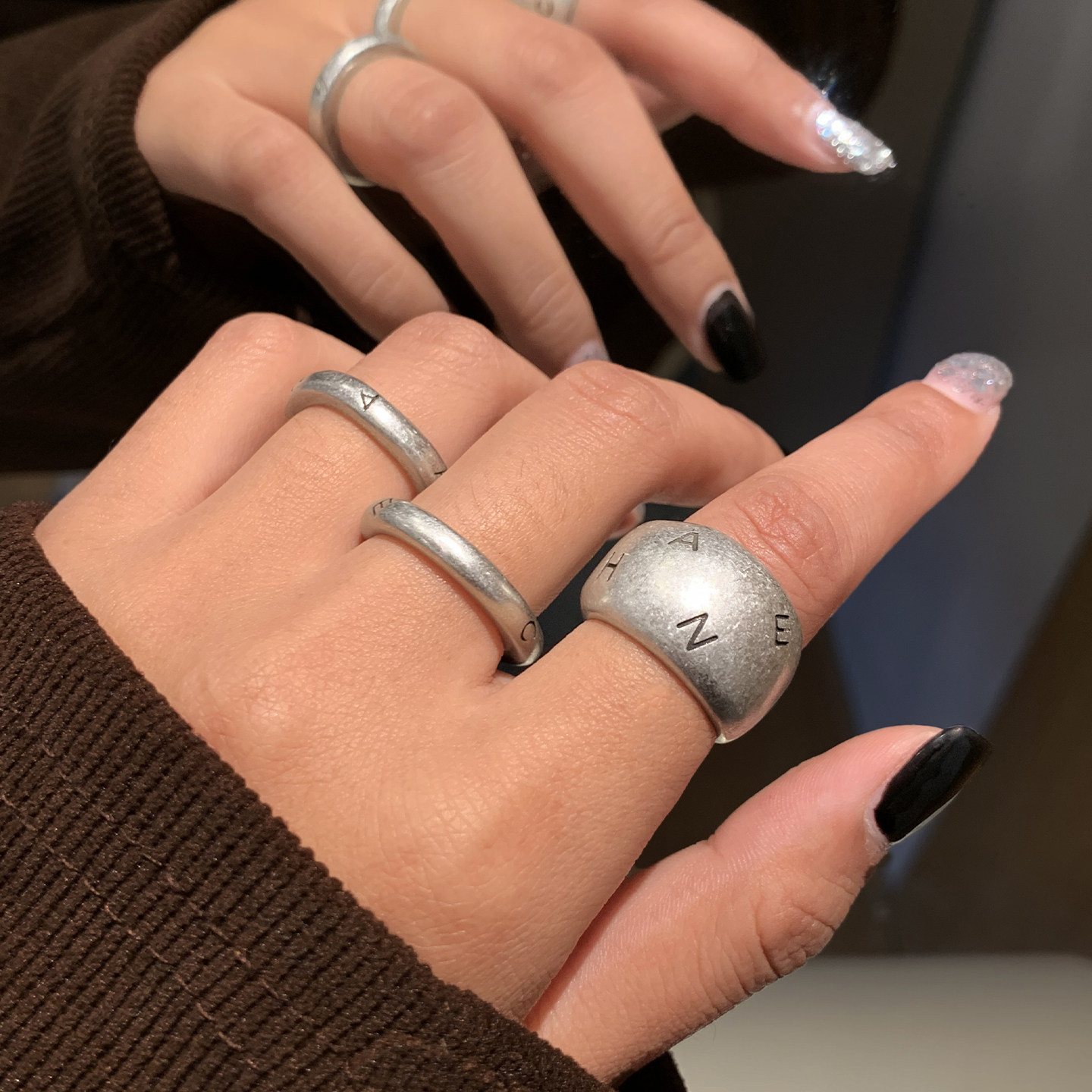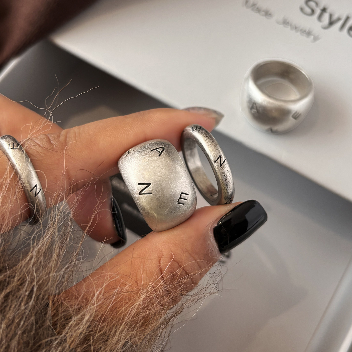 📚 老钱风复古银色戒指女轻奢小众设计高级感中古食指戒情侣对戒指环