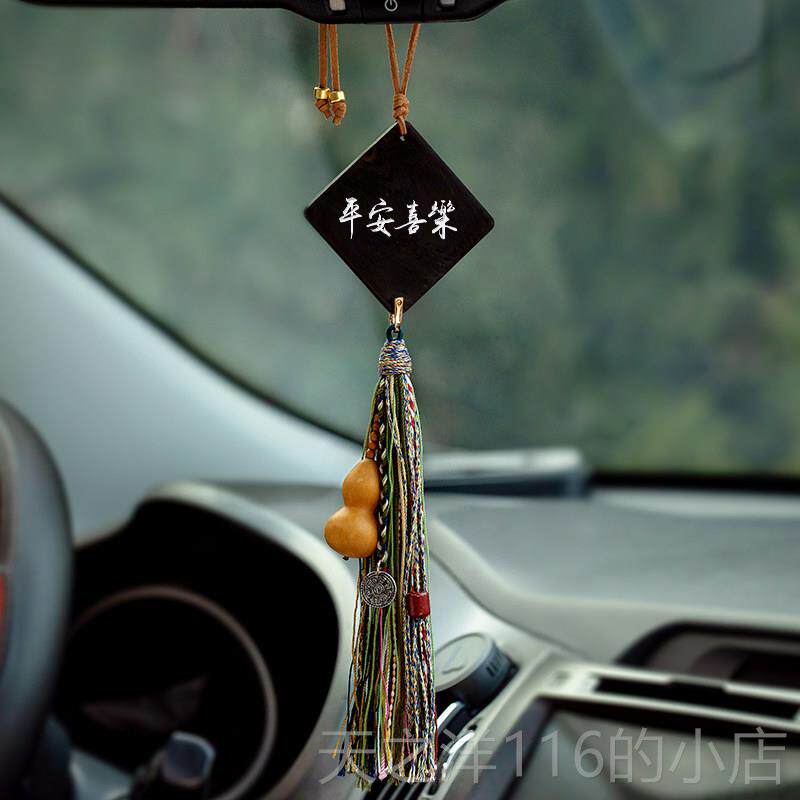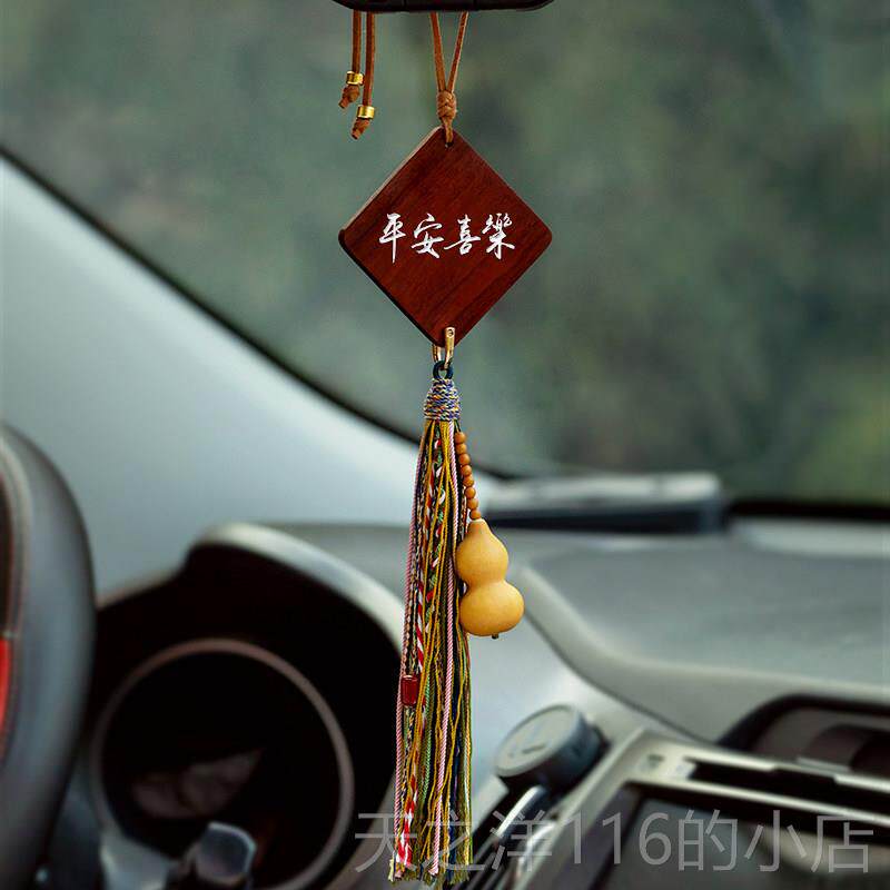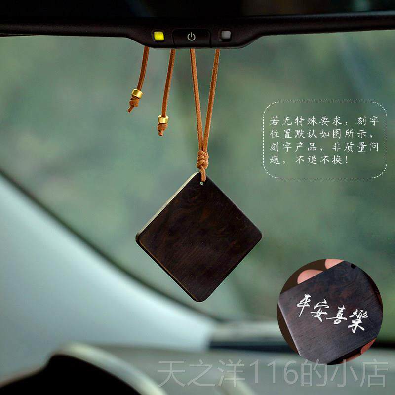 📚 正品天然檀木事牌平安汽车无挂件古覆创自定义刻字车载后视意镜挂