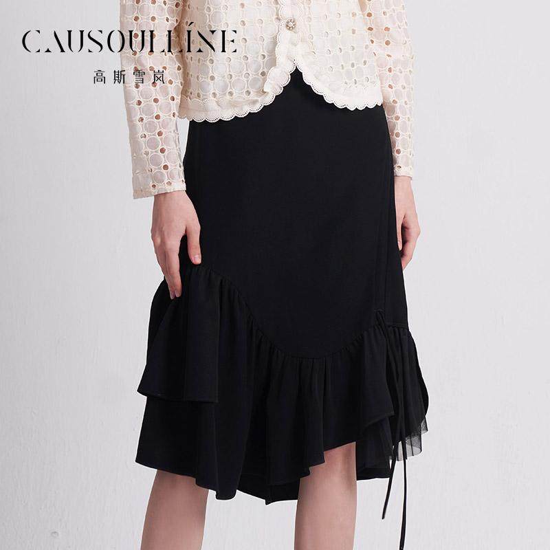 📚 高斯雪岚2025春装新款设计感不规则半身裙黑色气质优雅小黑裙a裙