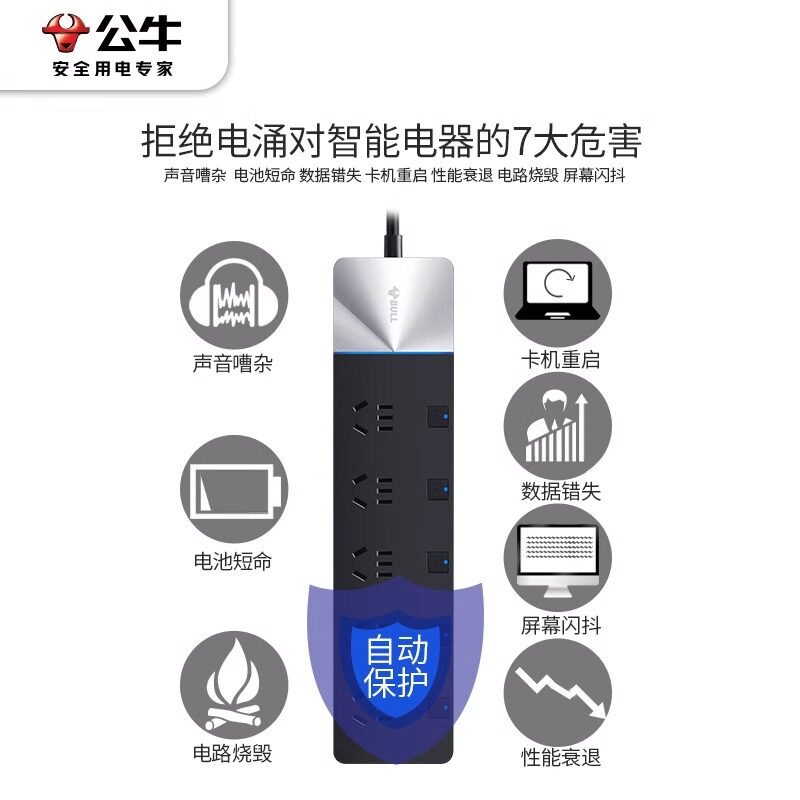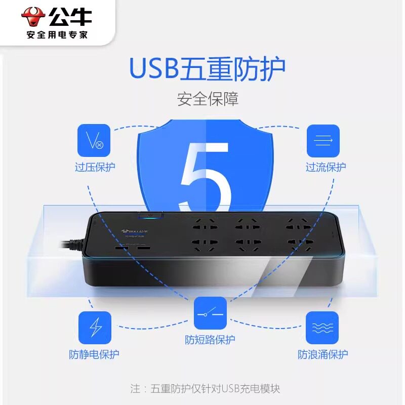 📚 公牛插座抗电涌独立开关过载保护防雷插座USB插排插线板官方旗舰