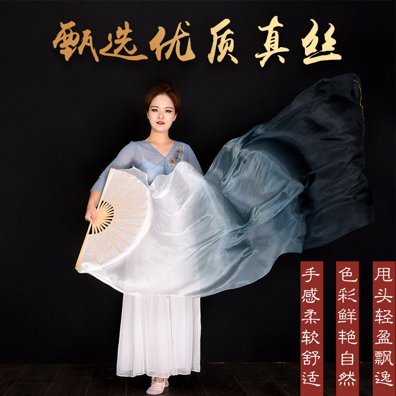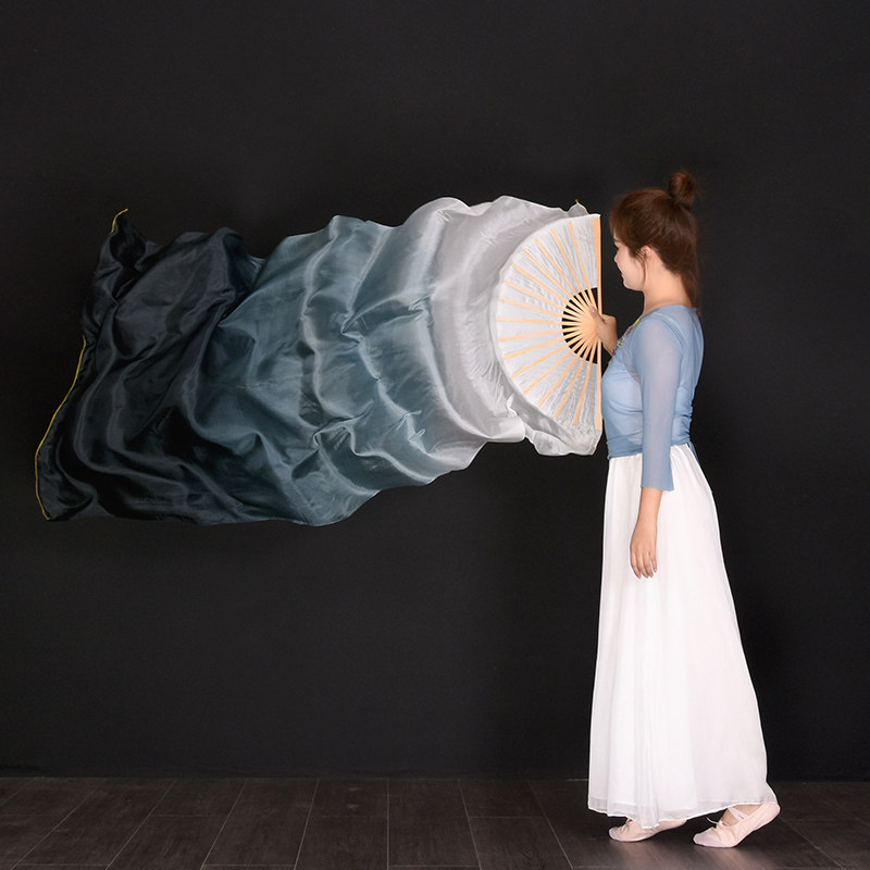 📚 水墨黑色真丝舞蹈扇子古典舞左手指月水墨兰亭长绸扇烟雨云台舞扇