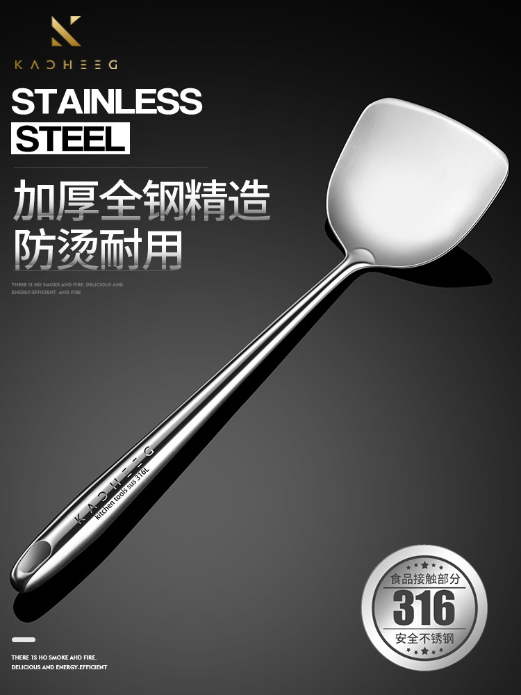 📚 316L不锈钢抹刀家用食品级烹饪抹刀加厚一体式煎勺汤勺厨具套装