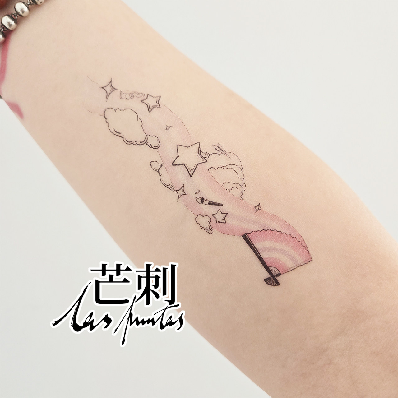 📚 芒刺原创文身贴|pomo扇子|彩色防水持久彩虹后现代纹身贴tattoo