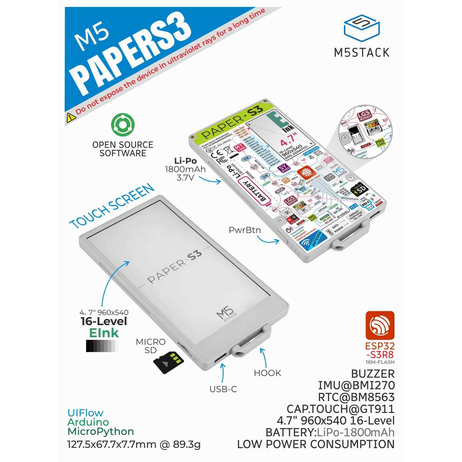 📚 官方M5Stack Papers3触摸低功耗4.7数字墨水屏幕开发板Esp32S3
