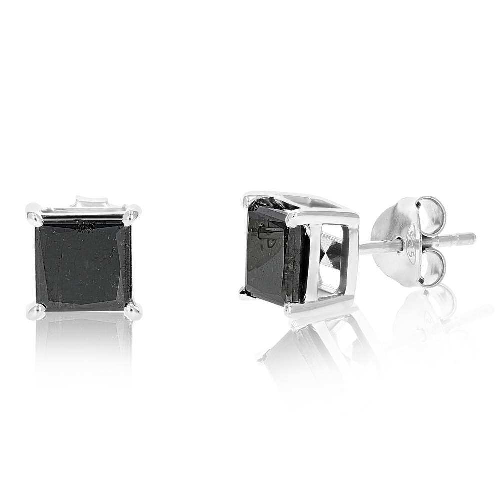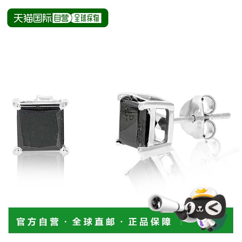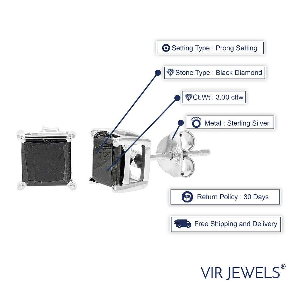 📚 自营 vir jewels3 cttw 公主方形切割黑色钻石耳钉 .925 纯银爪镶