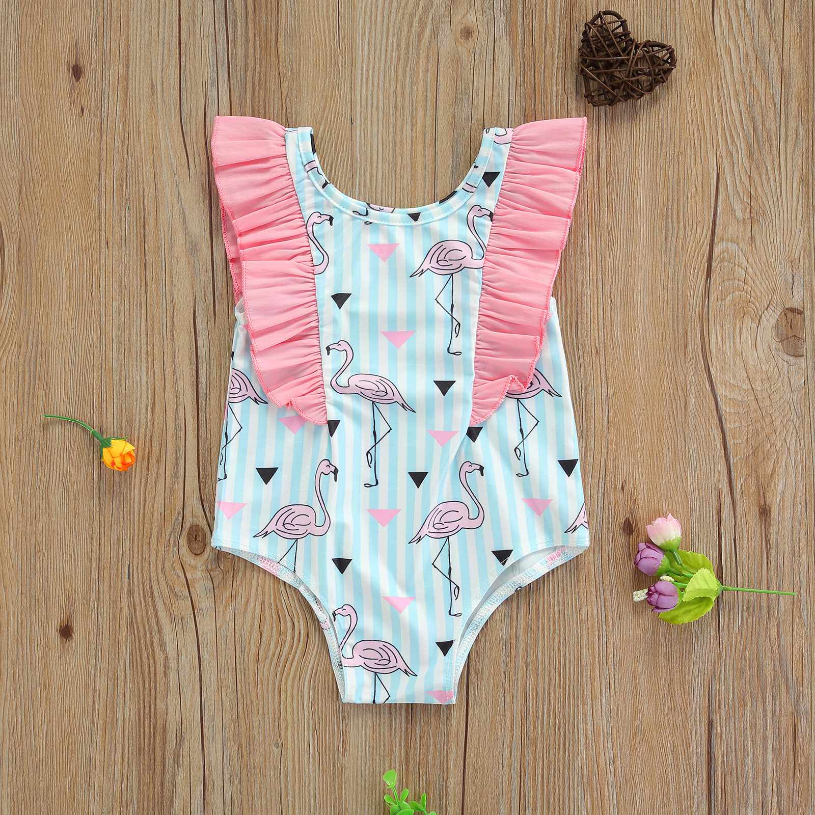 📚 Summer Girls Swimwear Kids Girls Flamingo/ Flower Print O-Ne