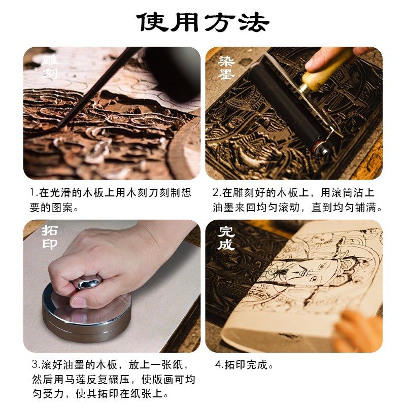 📚 钢珠马莲木刻版画印刷拓印可转动油墨版画印刷马莲