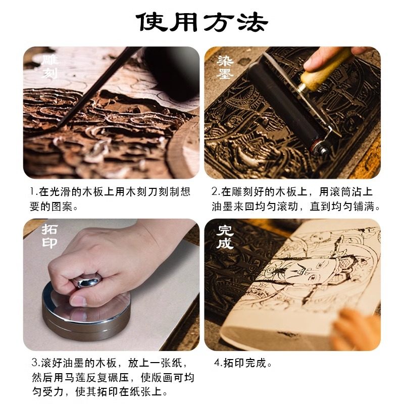 📚 钢珠马莲木刻版画印刷拓印工具可转动油墨版画印刷蘑菇滚珠可更换