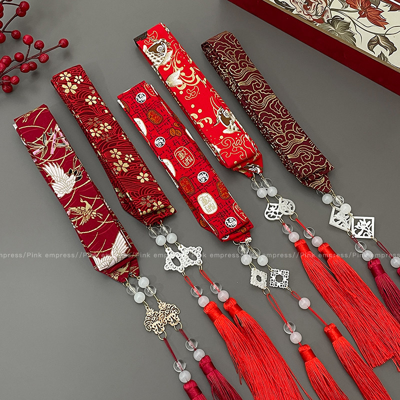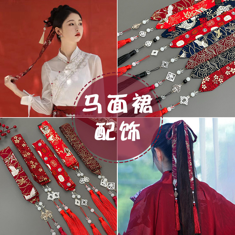 📚 汉服头饰红色发带女国风马面裙配饰古风飘带流苏丝带头绳古装发饰