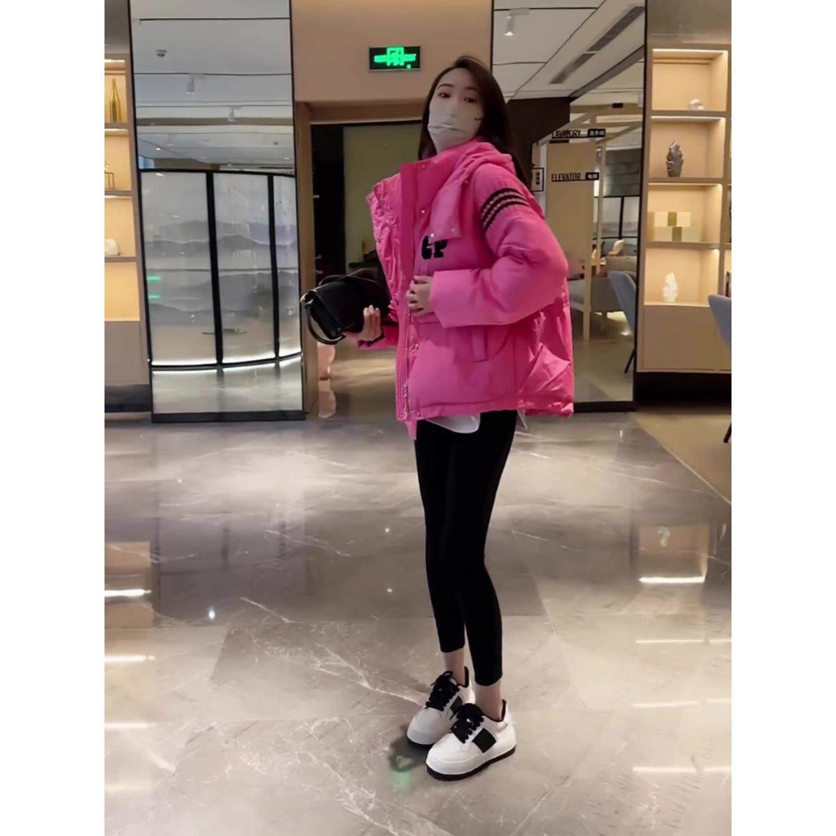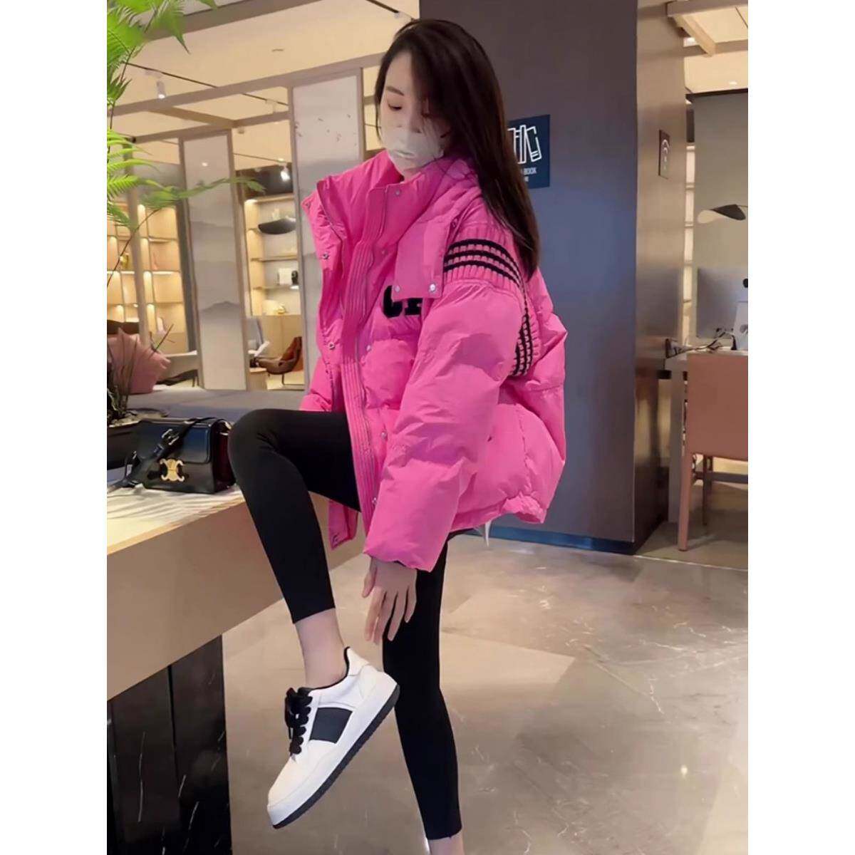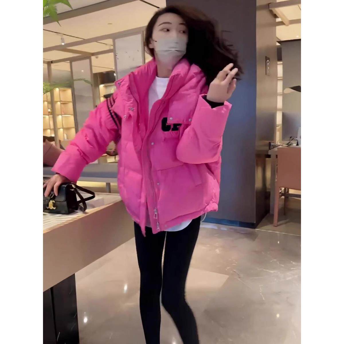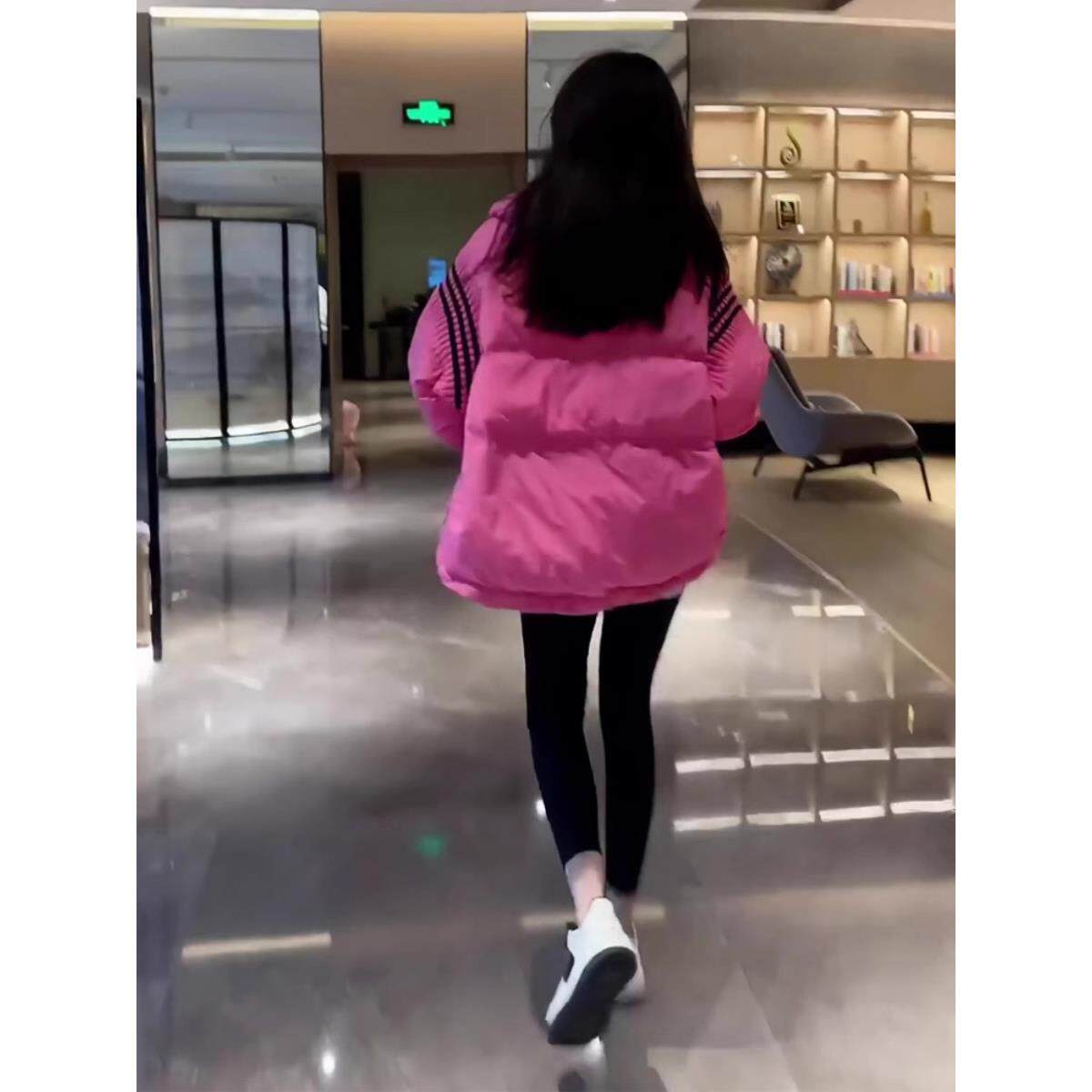 📚 玫红色羽绒服女2025冬季新款小个子宽松加厚针织拼接短款棉袄外套