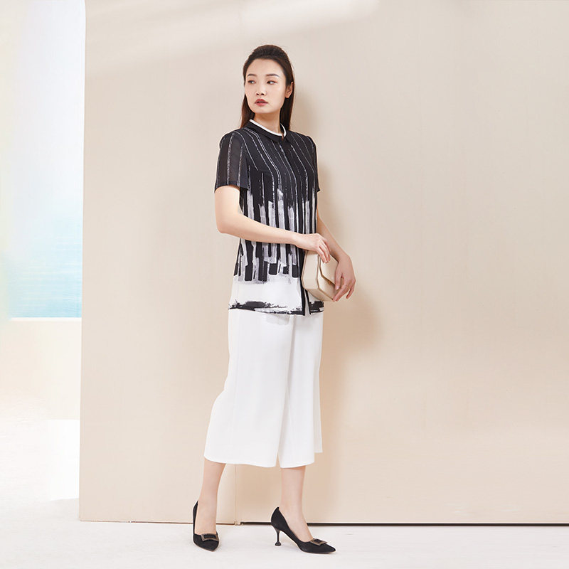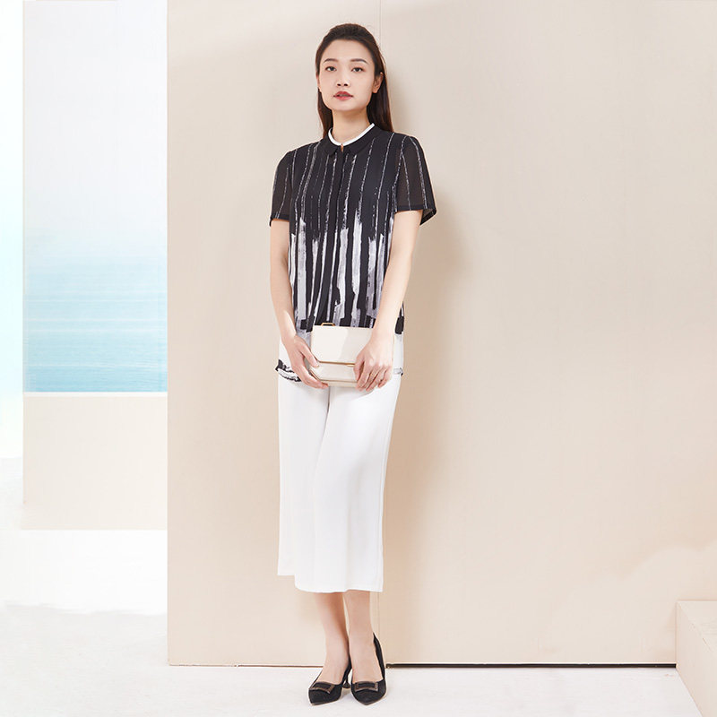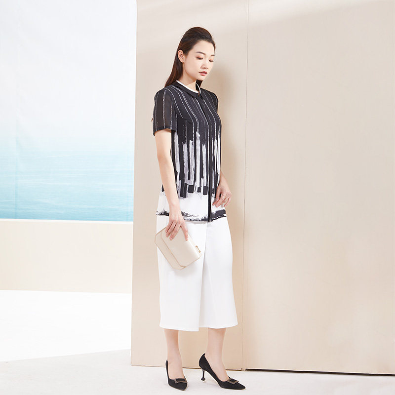 📚 LIANGNUO靓诺黑白水墨条文渐变衬衫LC18222A