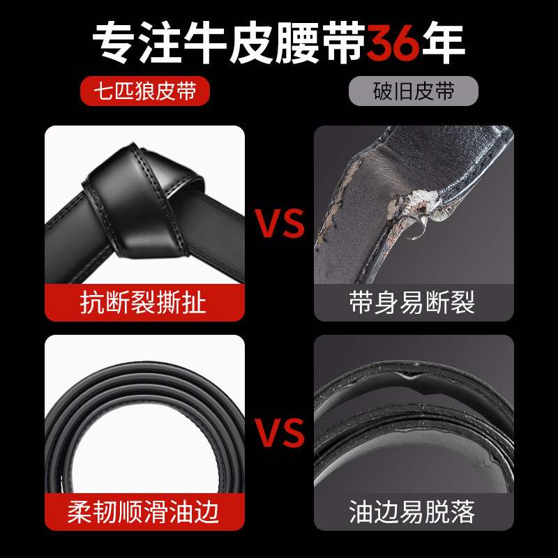 📚 七匹狼皮带男真皮不带头自动扣男士腰带牛皮无头带身不要扣头裤带