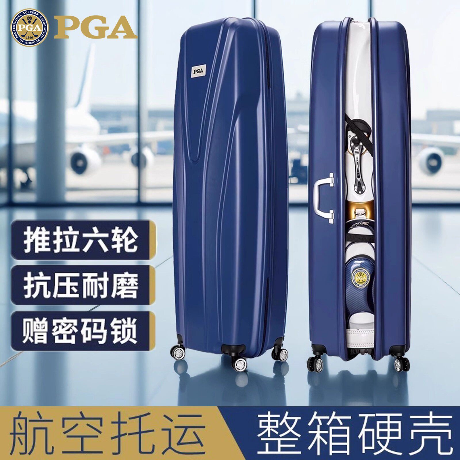 📚 PGA高尔夫球包男女万向四轮硬壳航空托运球包保护套旅行包404002