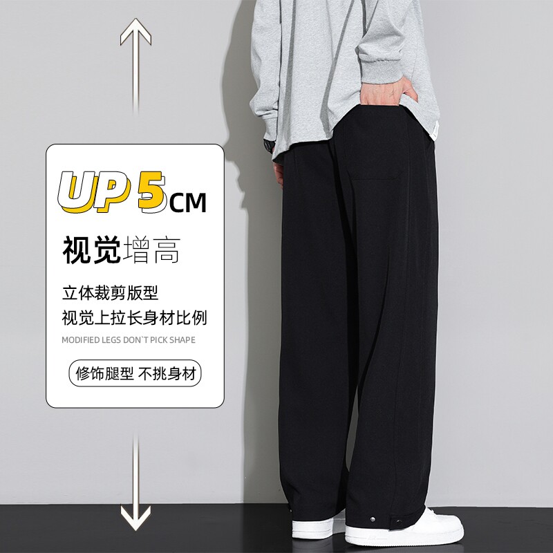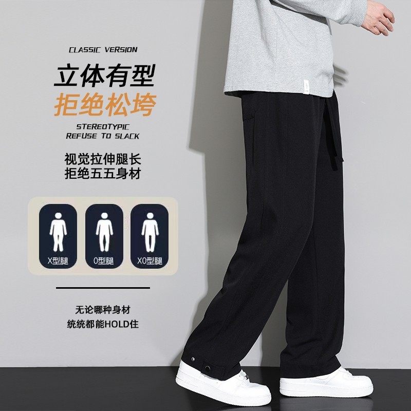 📚 啄木鸟春季新款黑色裤子男士宽松阔腿直筒垂感百搭运动休闲长裤TZ